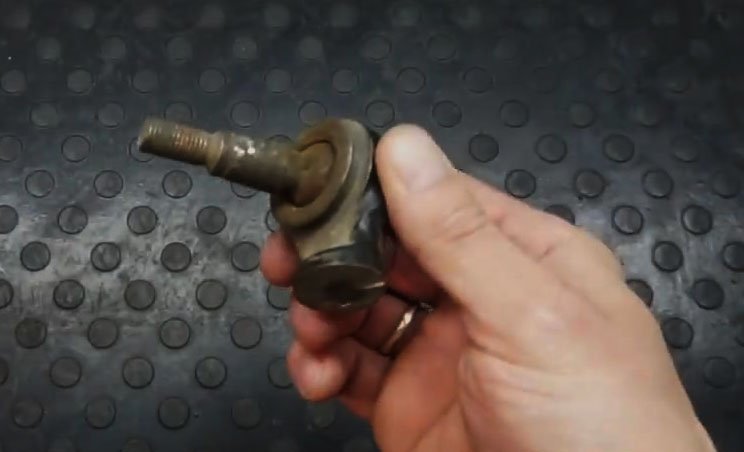 Берём ненужный наконечник рулевой тяги от легкового автомобиля и отпиливаем от него всё не нужное.