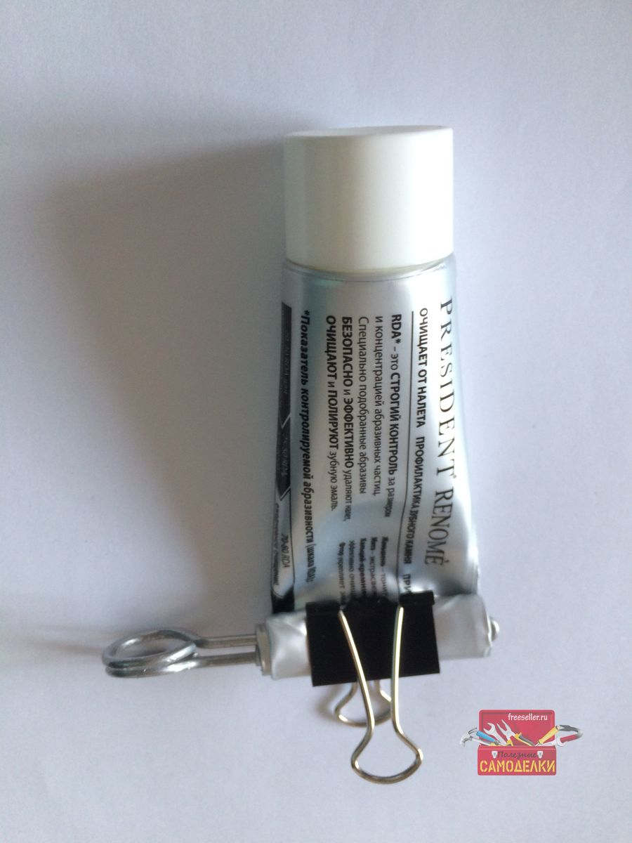 Это приспособление можно применять для любых тюбиков с пастой, клеем, краской, мазью и т.п.
