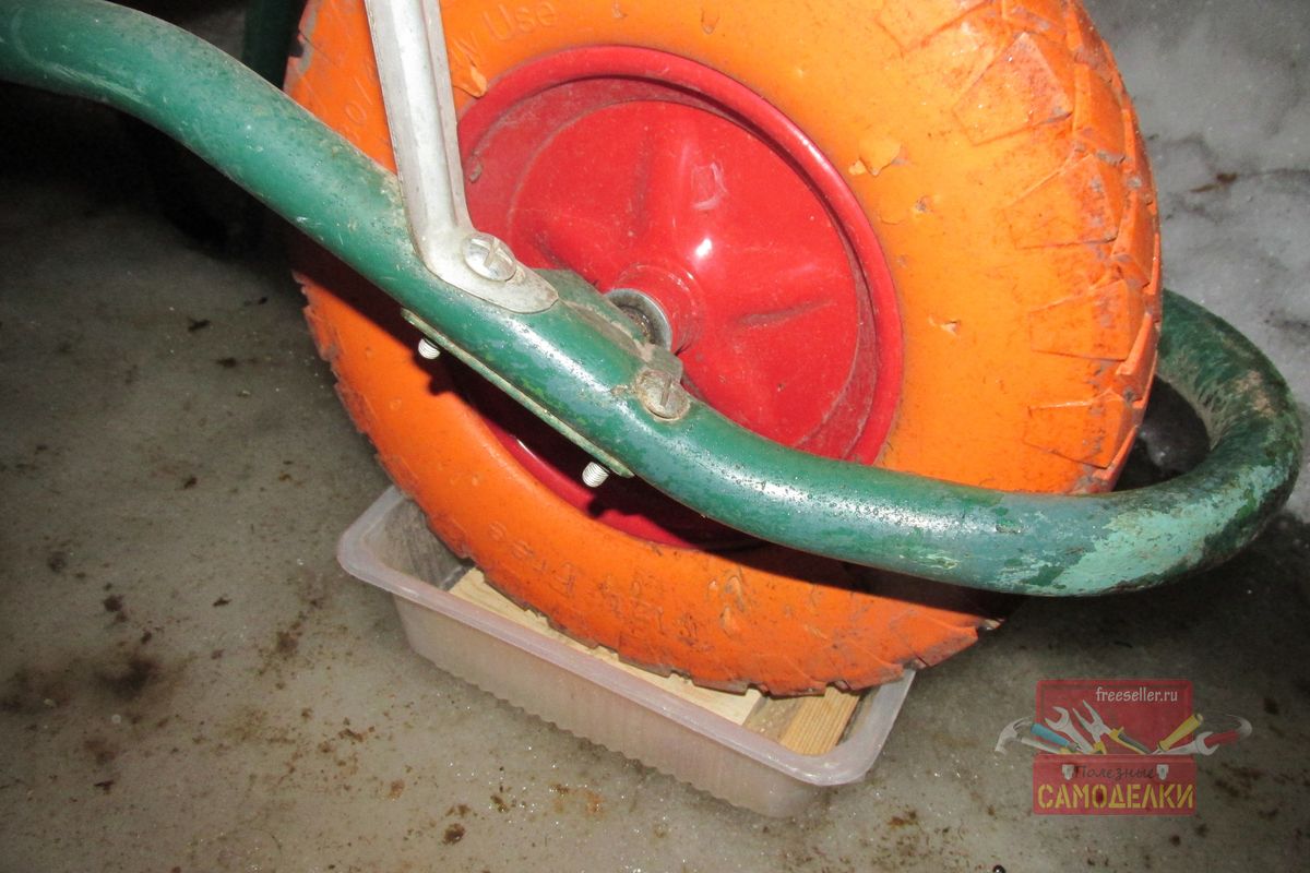 И после этого вставил колесо тачки в этот контейнер.![]()