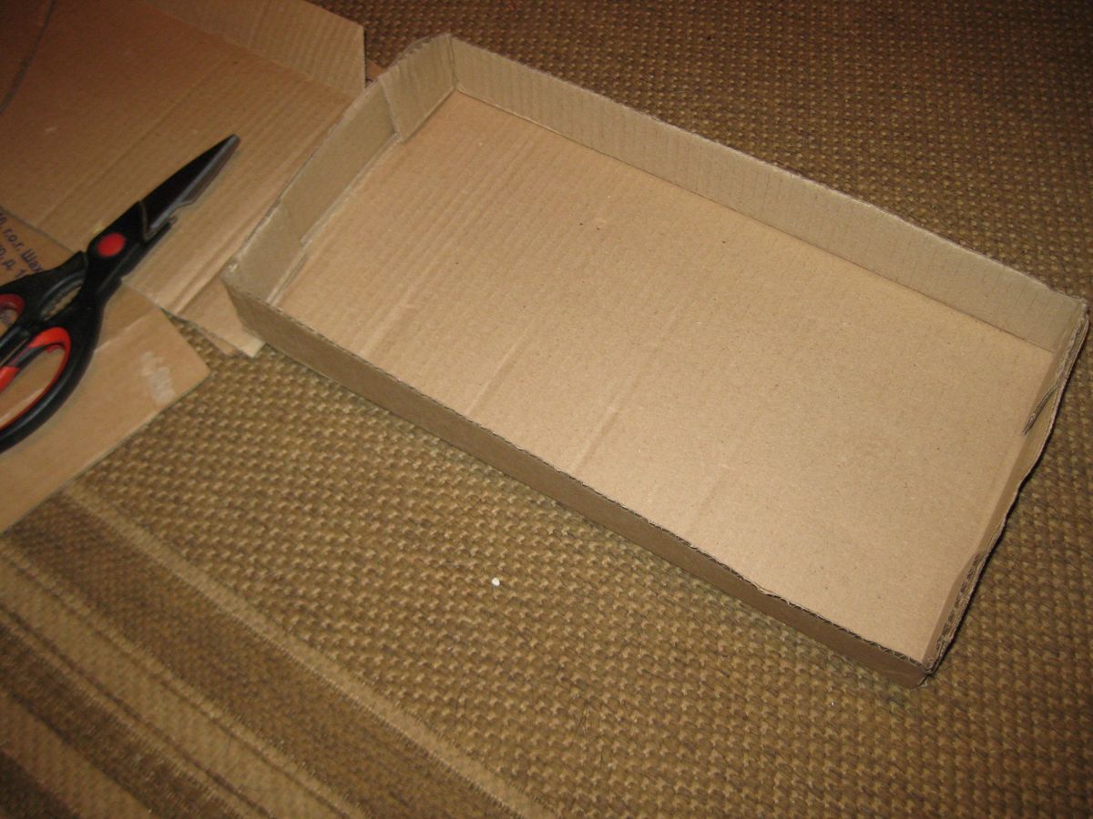 Далее из картонной коробки, в которой были упакованы молочные пакеты, сделал основу для органайзера. Для этого, я просто обрезал высокие борта коробки и оставил днище с бортиками высотой 4-5 см.![]()