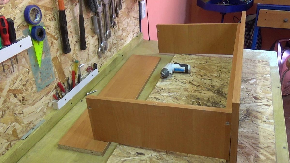 Но когда у тебя есть собственная мастерская, то такое добро отдавать нельзя. Да и зоны хранения лишними никогда не будут. Как только жена отдала свой старый комод, то решено было сразу же пустить его в дело. Каркас комода разобрал и оставил для следующих самоделок, а вот ящики использовал сразу.