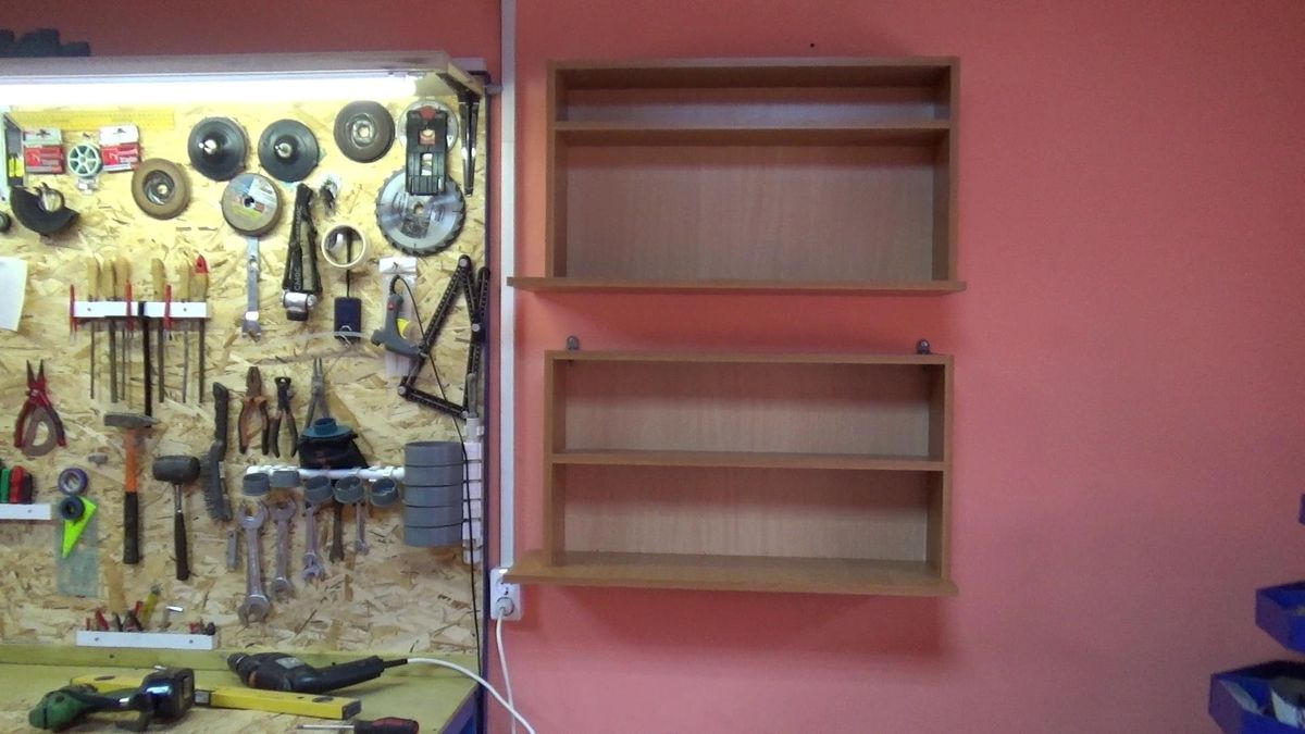Так же рекомендую посмотреть видео по изготовлению самодельных полочек для мастерской: