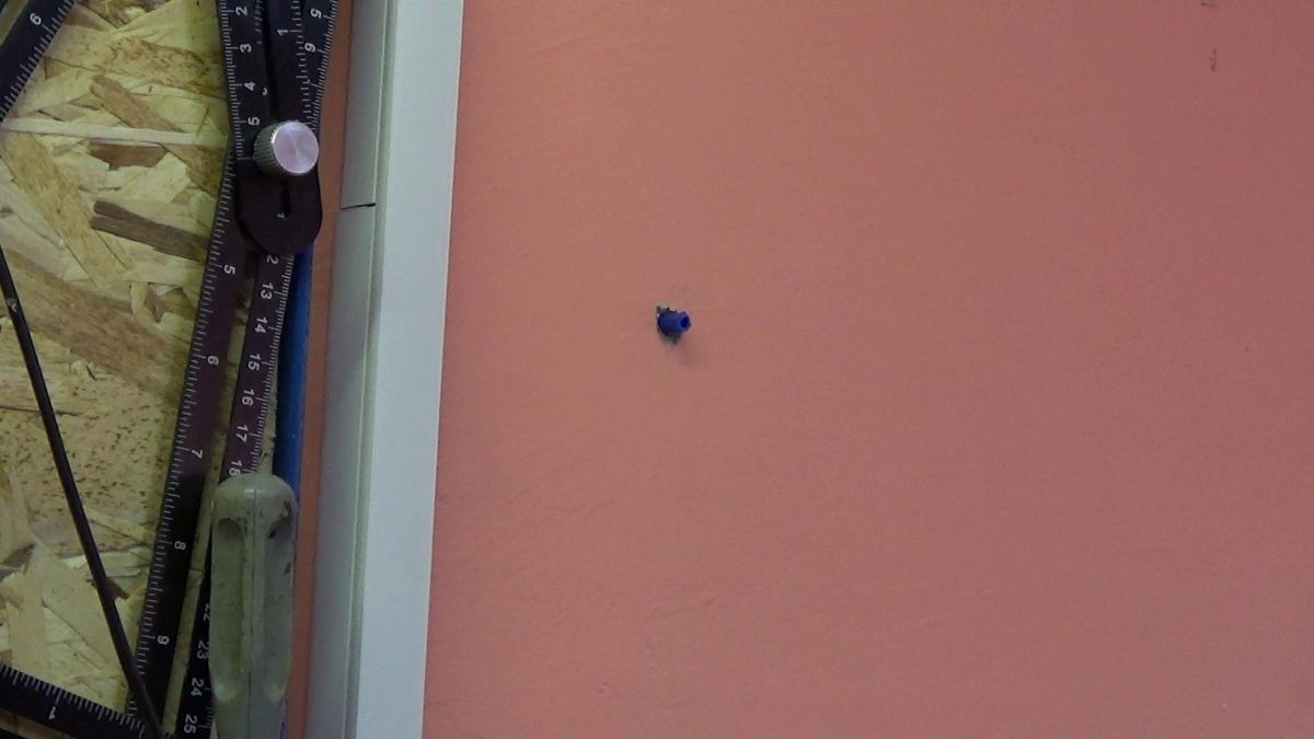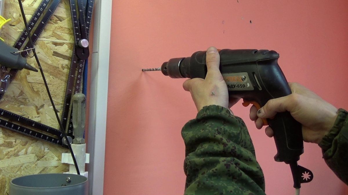 Затем делаем отверстия в стене, в том месте где будут висеть полочки. Желательно использовать уровень, что бы все красиво висело. Крепить буду на обычные дюбеля и саморезы.