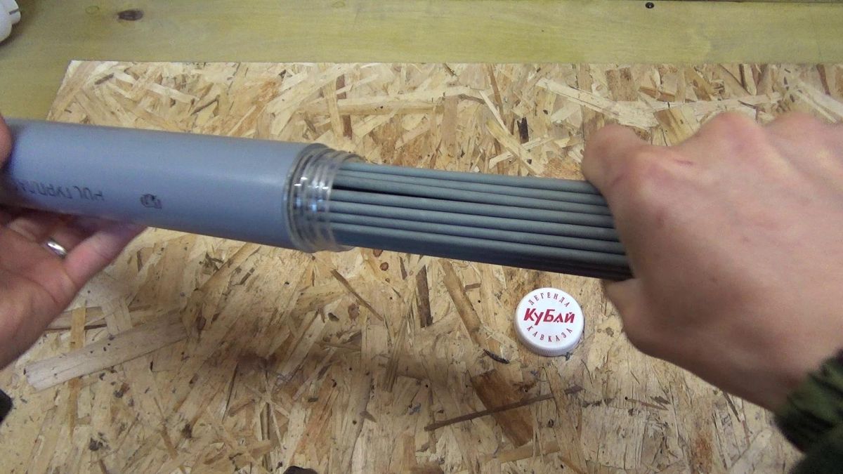 Вот и тубус готов. Теперь можно заполнить его электродами. Вместимость данного тубуса составляет почти две полных пачки электродов.