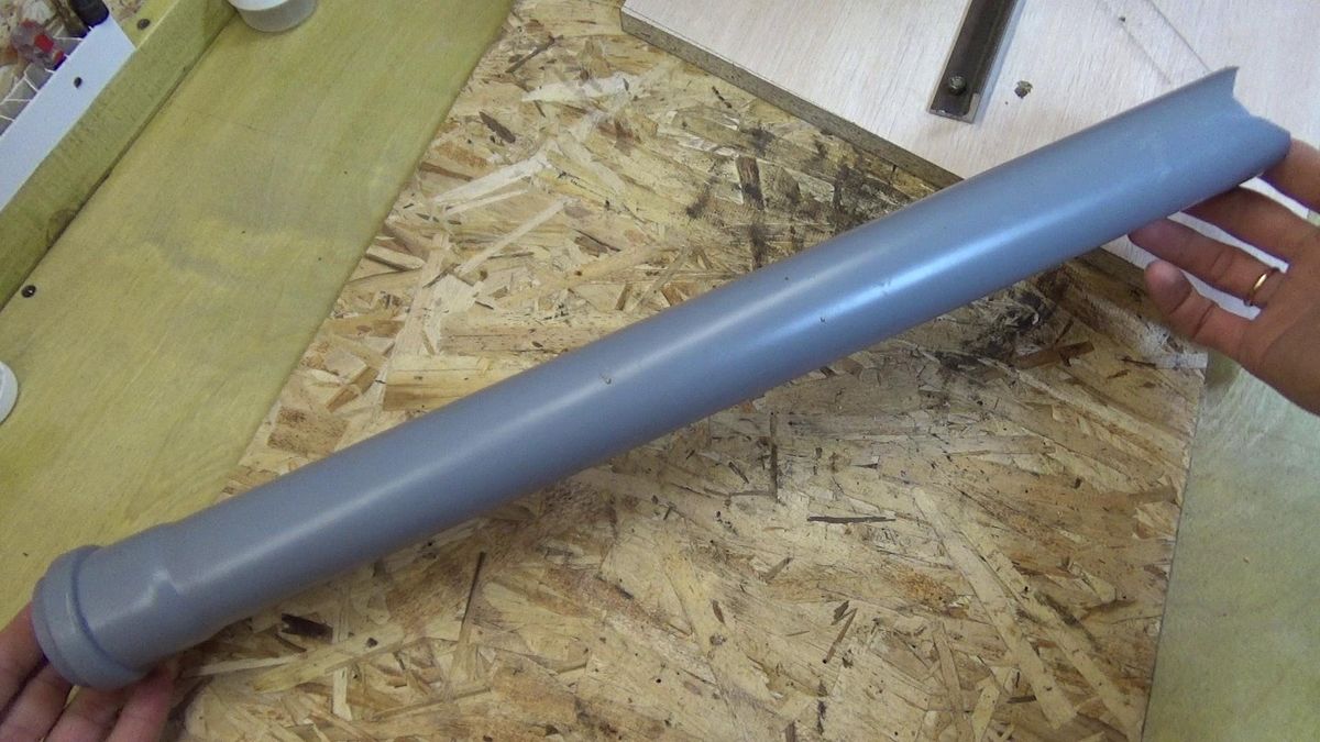 Первым делом берем отрезок от пластиковой трубы примерно 38-40 см, в зависимости от того, для каких целей делается тубус.