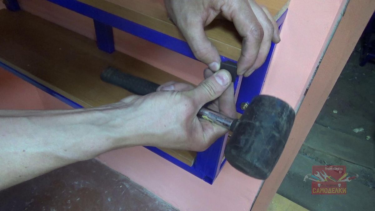Теперь можно поставить полочки и закрепить их при помощи винтов с гайками.