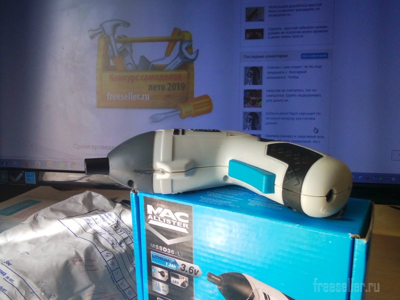 - аккумуляторная отвертка Macallister MSSD36-Li с литиевым аккумулятором на 3.6 вольт, встроенной Led подсветкой и комплектом бит.
