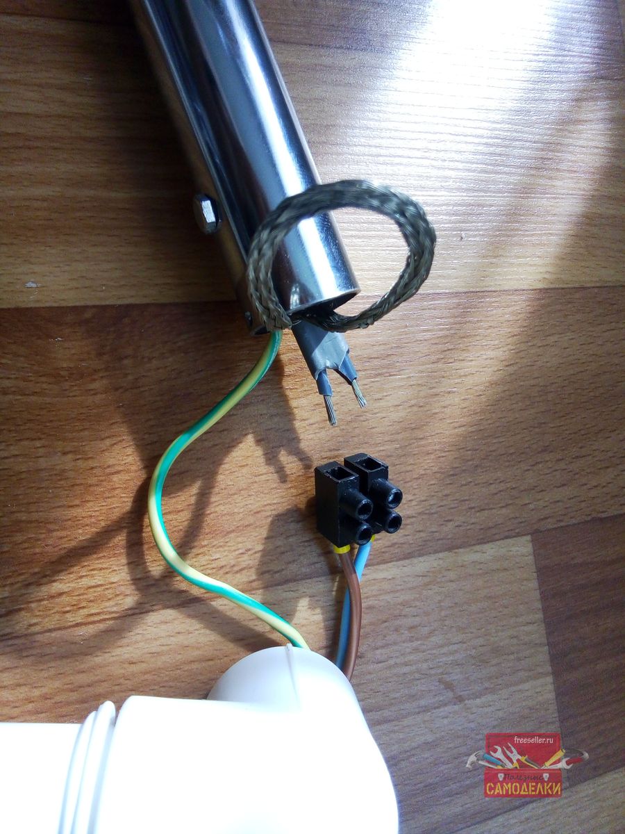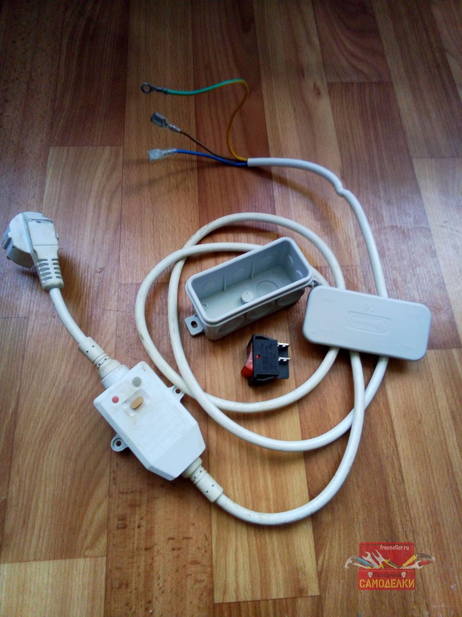 Шнур оказался коротковат и не дотягивался до нужной розетки. Проблему решил аналогичный кусок кабеля с соединительной коробкой, в которую была вмонтирована кнопка с подсветкой.