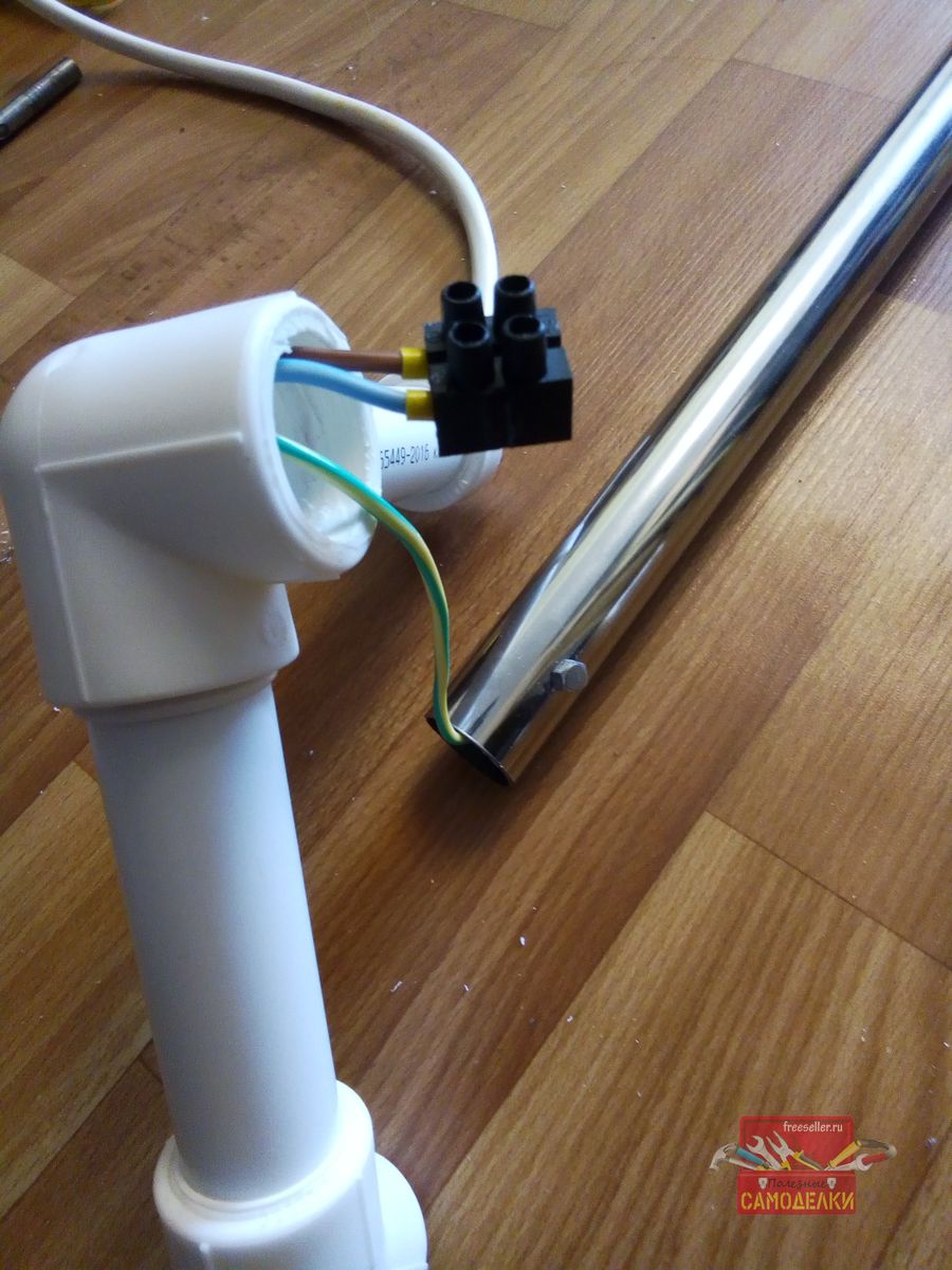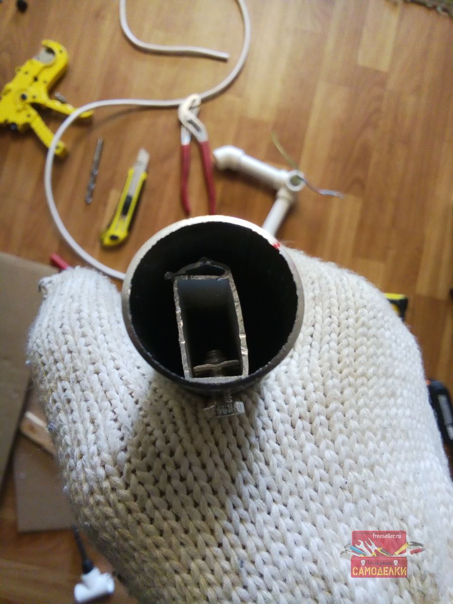 В дело пошло всё: и алюминиевый профиль от москитной сетки, и электрошнур с УЗО от старого электрического водонагревателя.