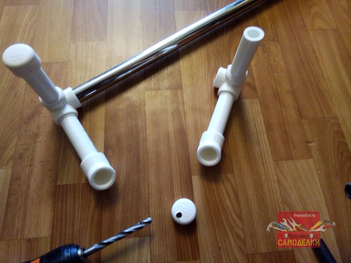 Из полипропиленовой трубы и фитингов были сделаны боковые держатели.