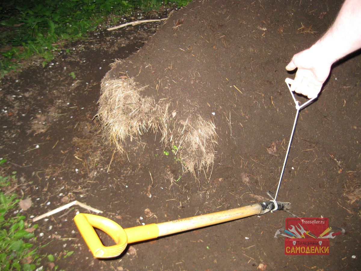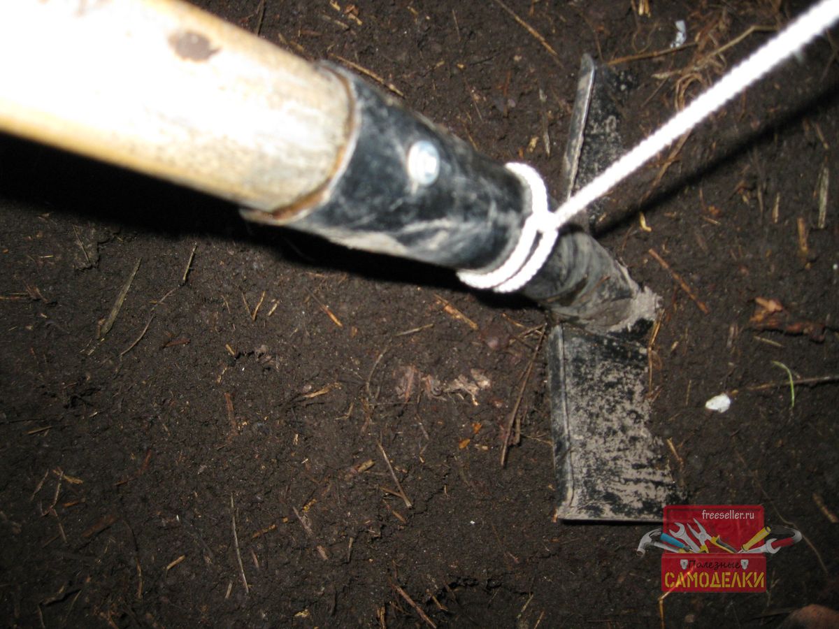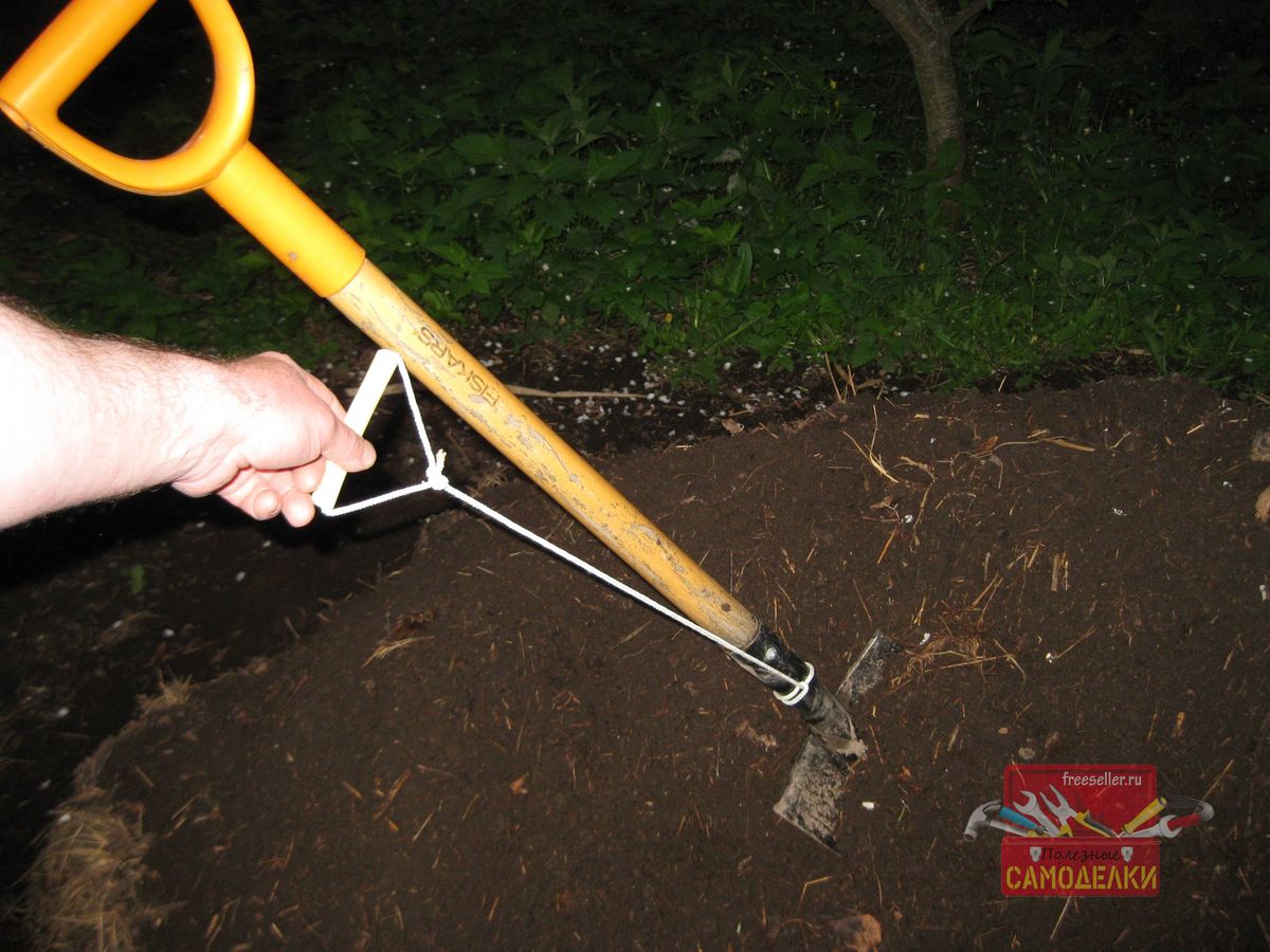 Однако если нет другой альтернативы, и приходится работать лопатой с коротким черенком, то такая веревочная рукоятка может значительно облегчить работу, да и сохранить здоровье спины.