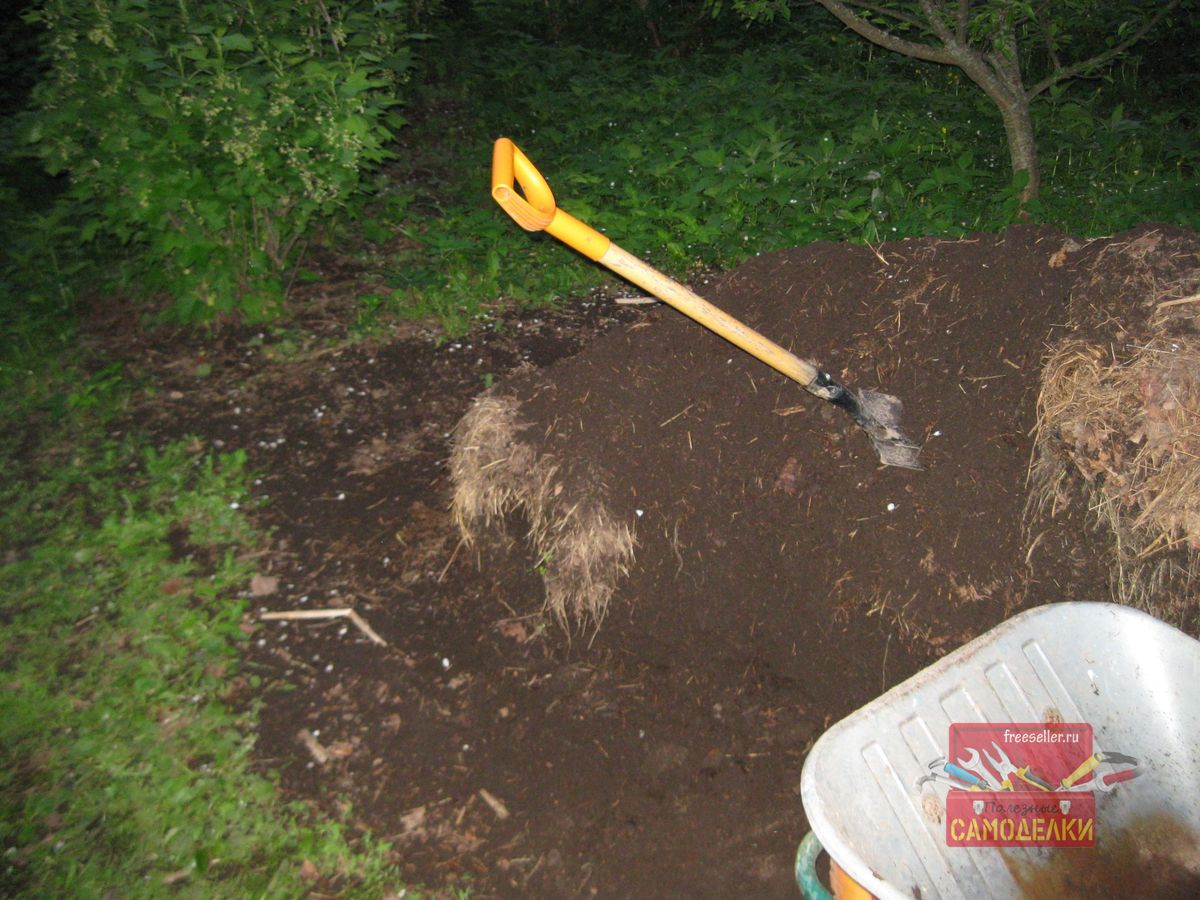 Однако эту лопату, мне не хотелось переделывать под длинный черенок, поскольку у нее есть одно важное достоинство: благодаря короткому черенку, она легко помещается в багажник автомобиля. Кроме того при некоторых видах работ, короткий черенок также оказывается весьма удобен. Например, когда приходится грузить в тачку и перевозить высокую кучу перегноя.