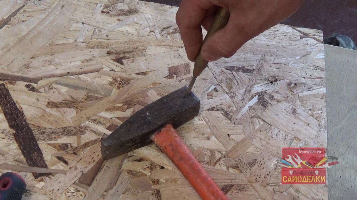 Теперь на нем нужно сделать метку и накернить, отступив от края около сантиметра.