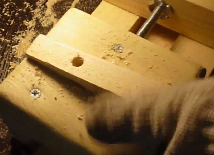 Перпендикулярно через плоскость двадцать миллиметров и через центр отверстия 24 мм, сверлим отверстия 9.5 мм.