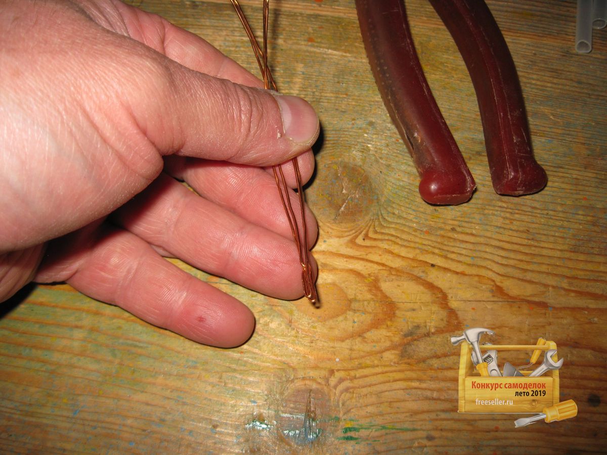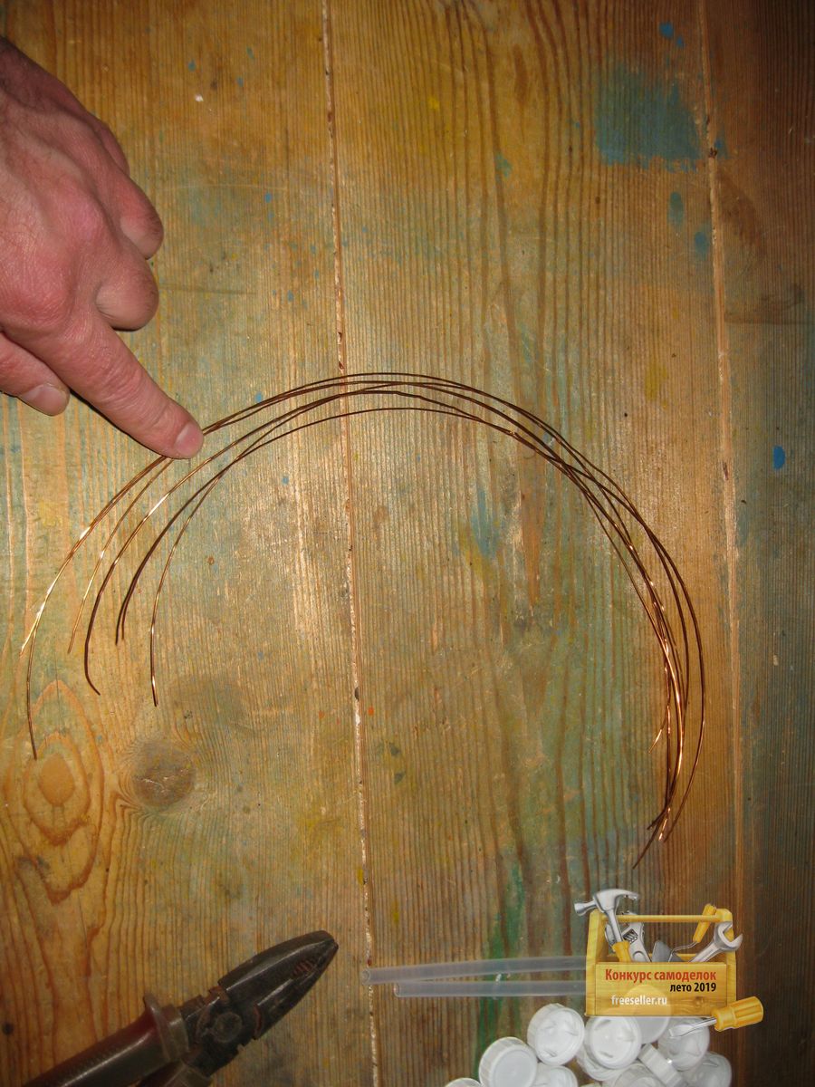 После этого нарезал тонкую медную проволоку на отрезки длиной 40-45 см.