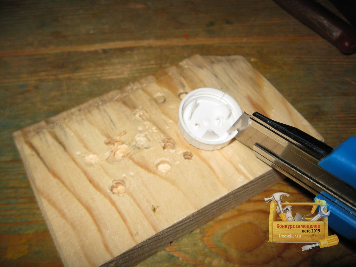 Затем сделал строительным ножом, по четыре надреза в стенках каждой крышки.