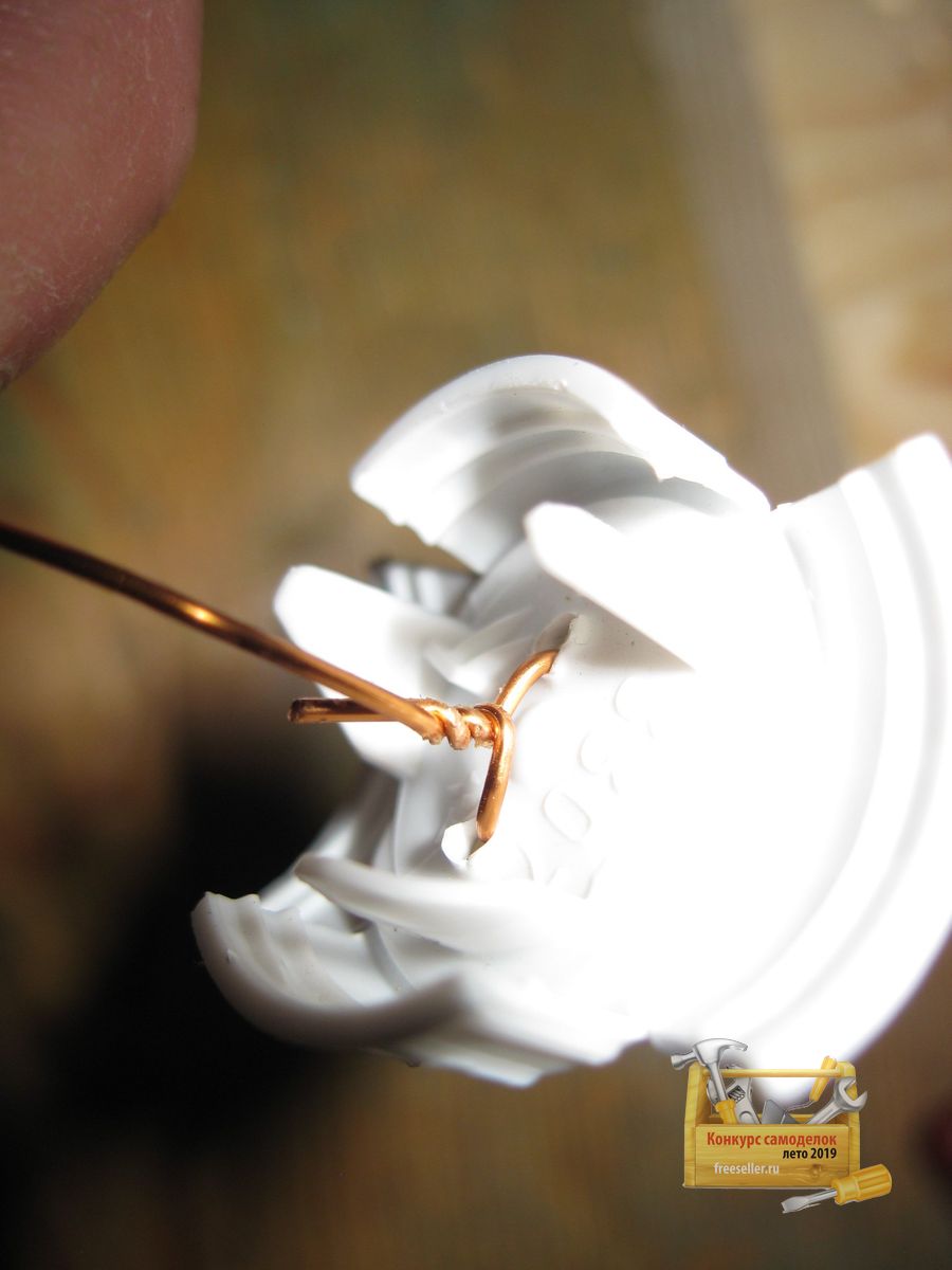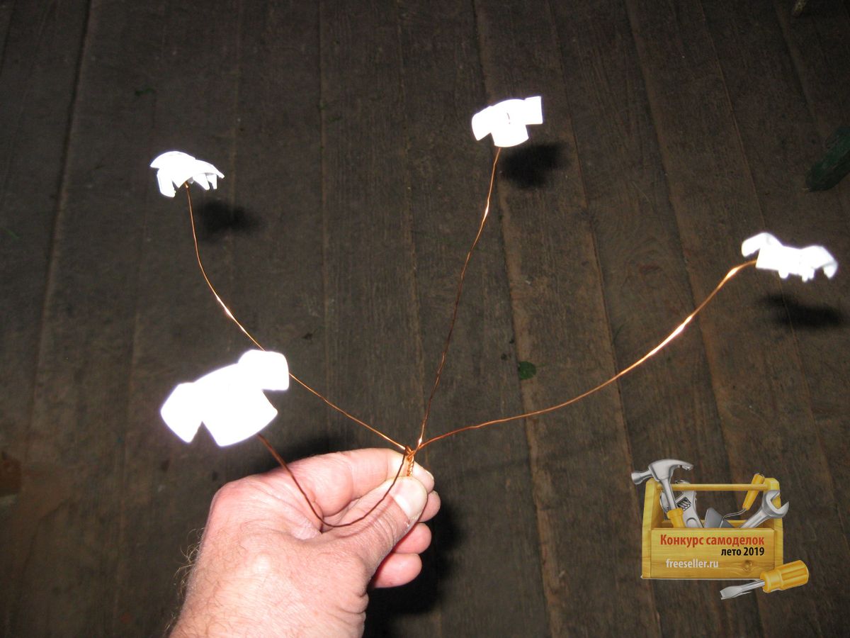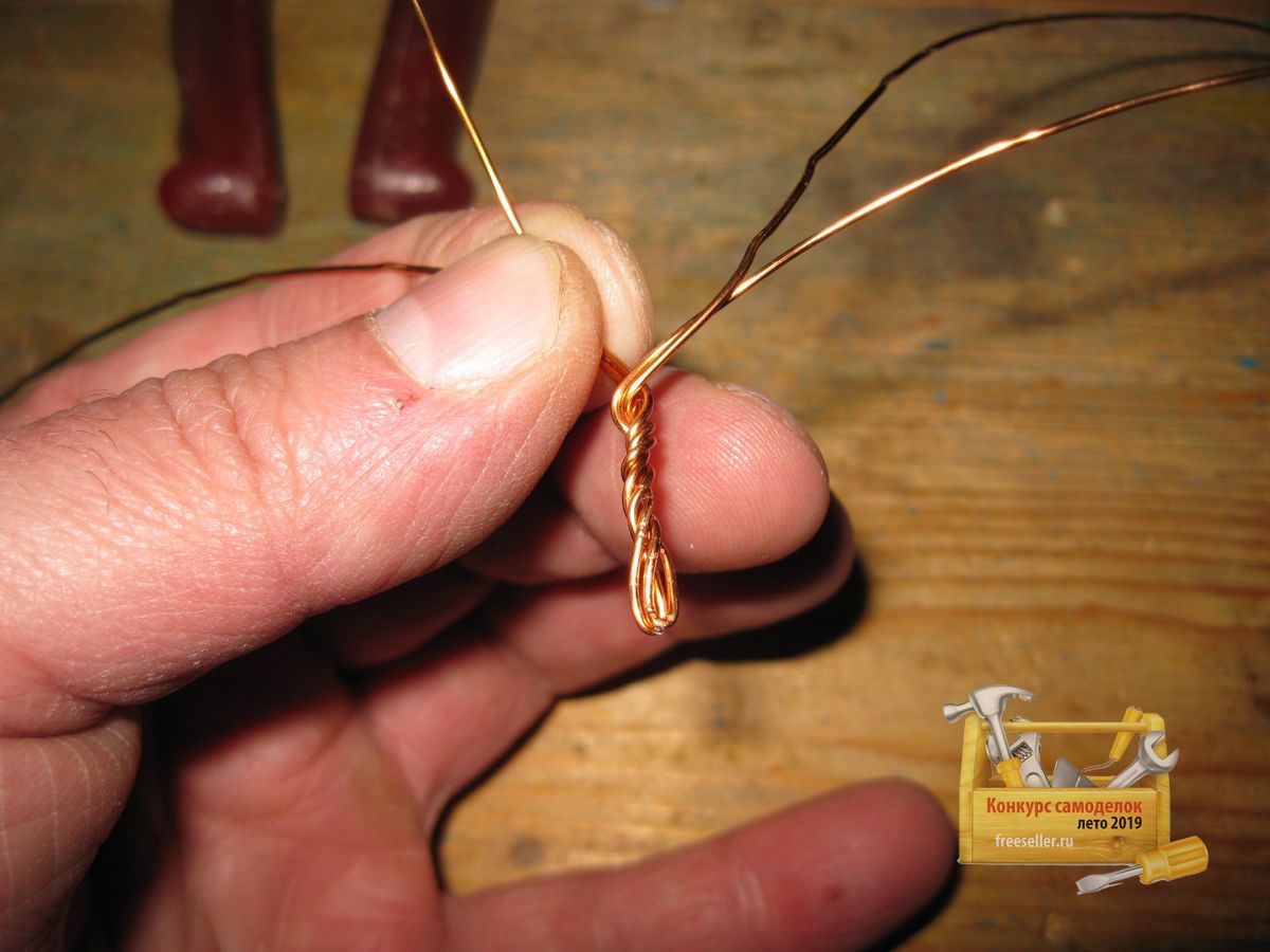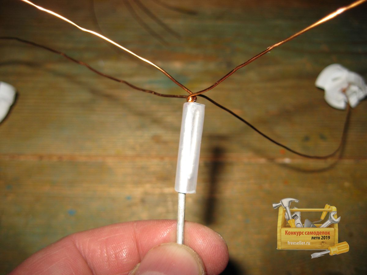В результате, у меня получилось по четыре усика медной проволоки, исходящих из общего основания.