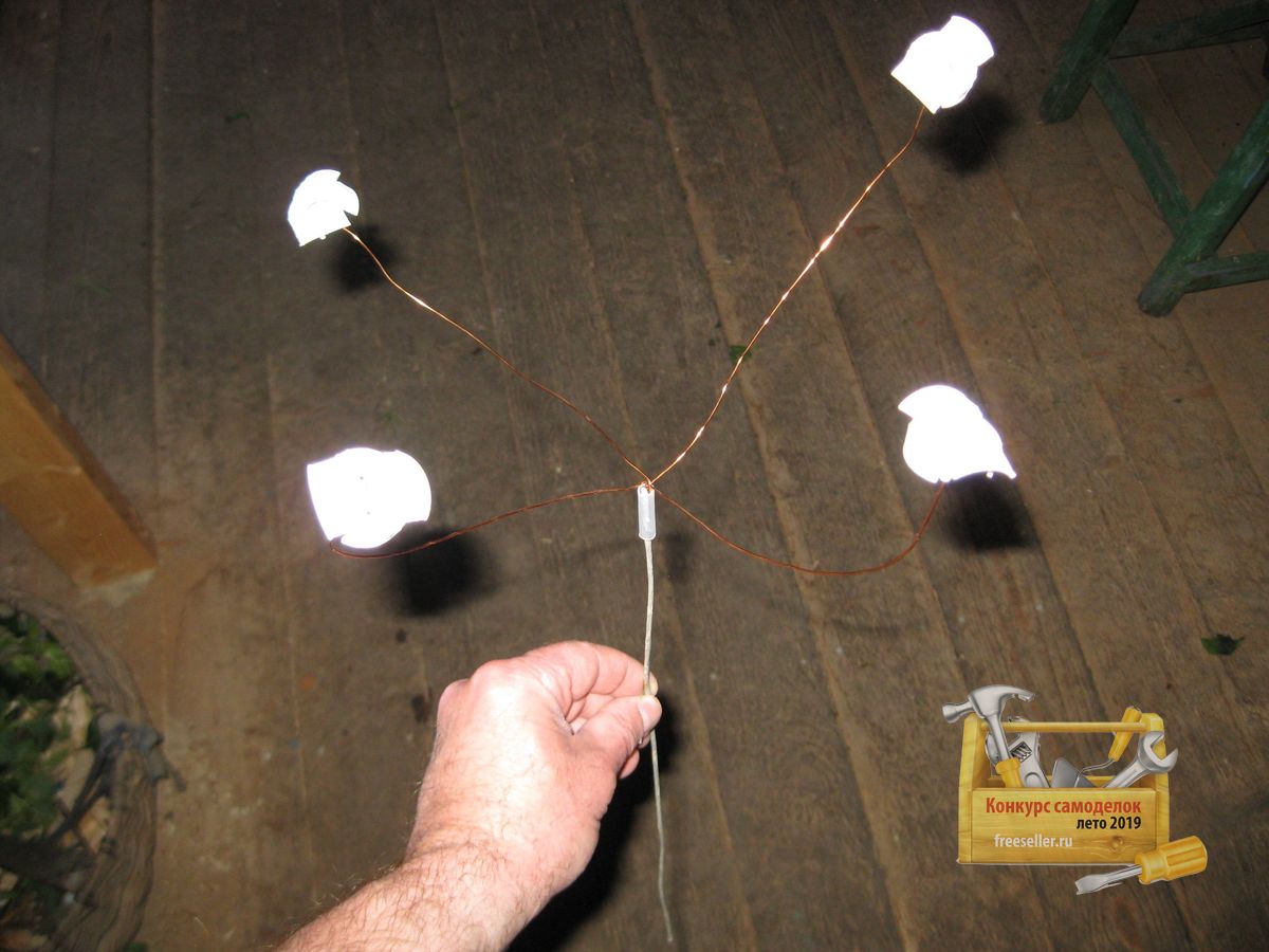 Теперь осталось только закрепить эти имитации на колышках из стальной проволоки.