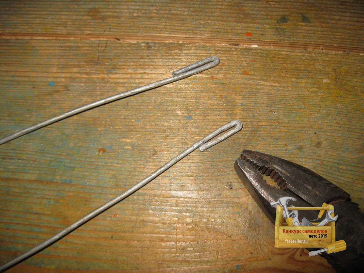 Затем вот таким образом, согнул кончики у этих отрезков проволоки.