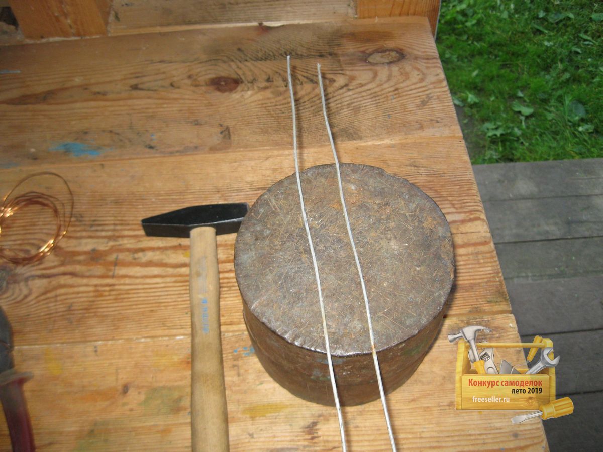 Для начала я нарезал стальную проволоку на отрезки длиной от 40 до 50 см, и слегка выпрямил их молотком на наковальне.
