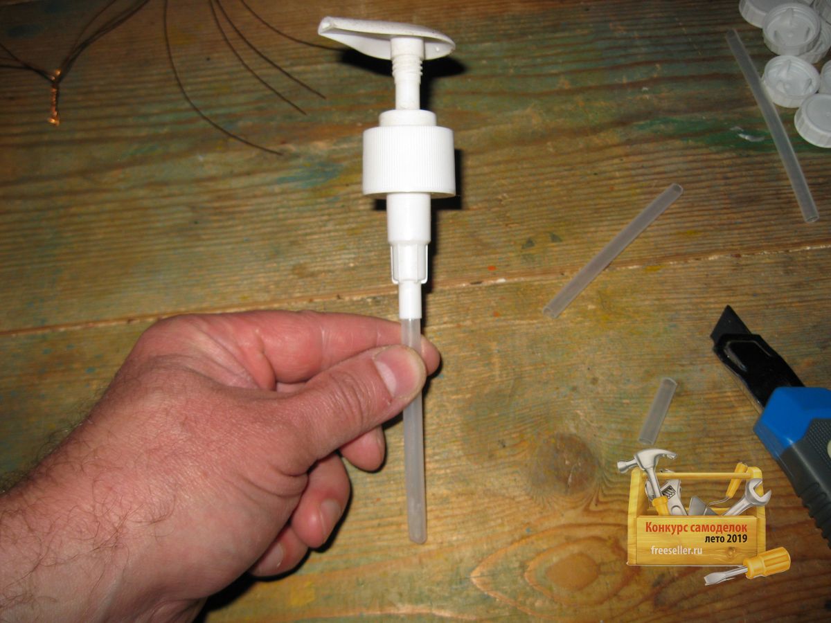 Для этого, я использовал отрезки пластиковых трубочек от дозаторов жидкого мыла.