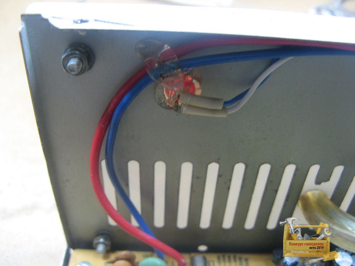 Для индикации включения установил светодиод. Припаял его на шину дежурного напряжения по пяти вольтам.