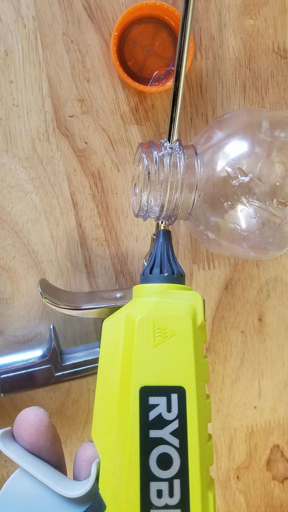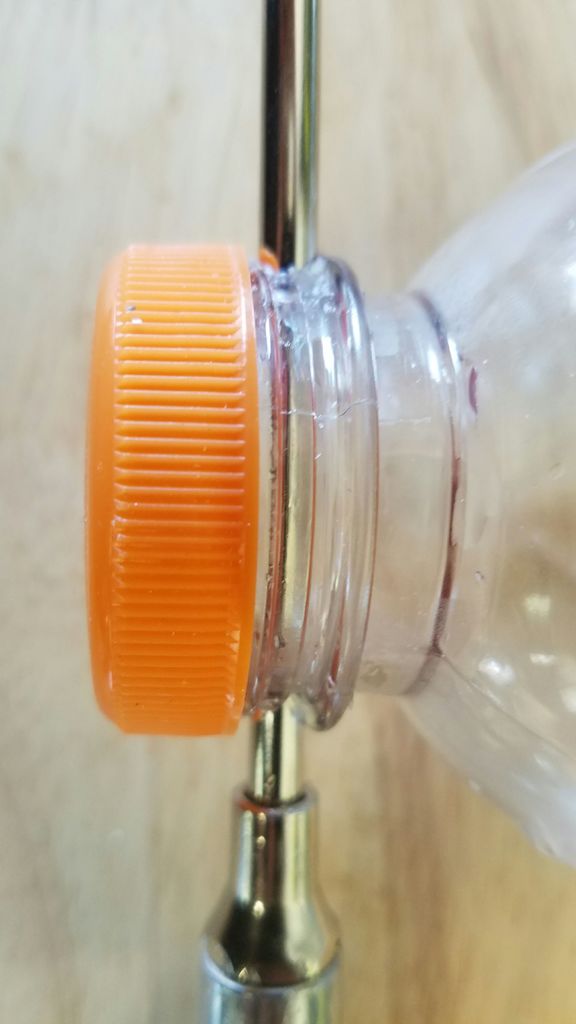 Теперь необходимо просверлить отверстие в горлышке пластиковой бутылки.