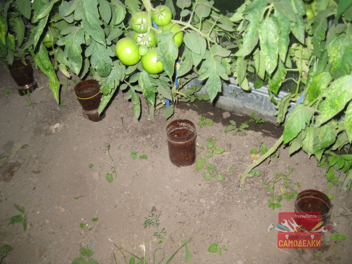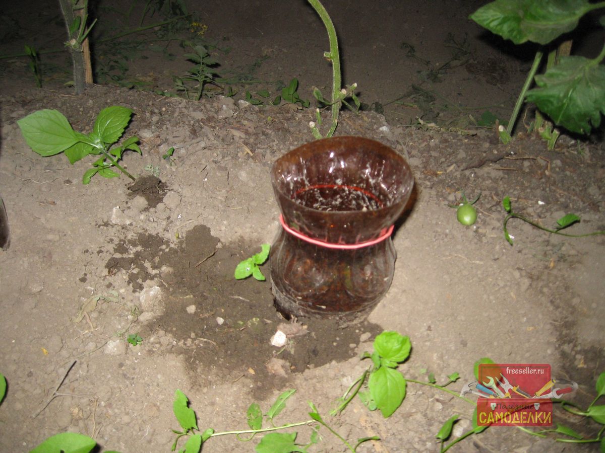 Дело в том, что многие садоводы в настоящее время, поливают растения в теплице не по поверхности почвы, а используют для этого вкопанные в землю пластиковые бутылки с отрезанными днищами.