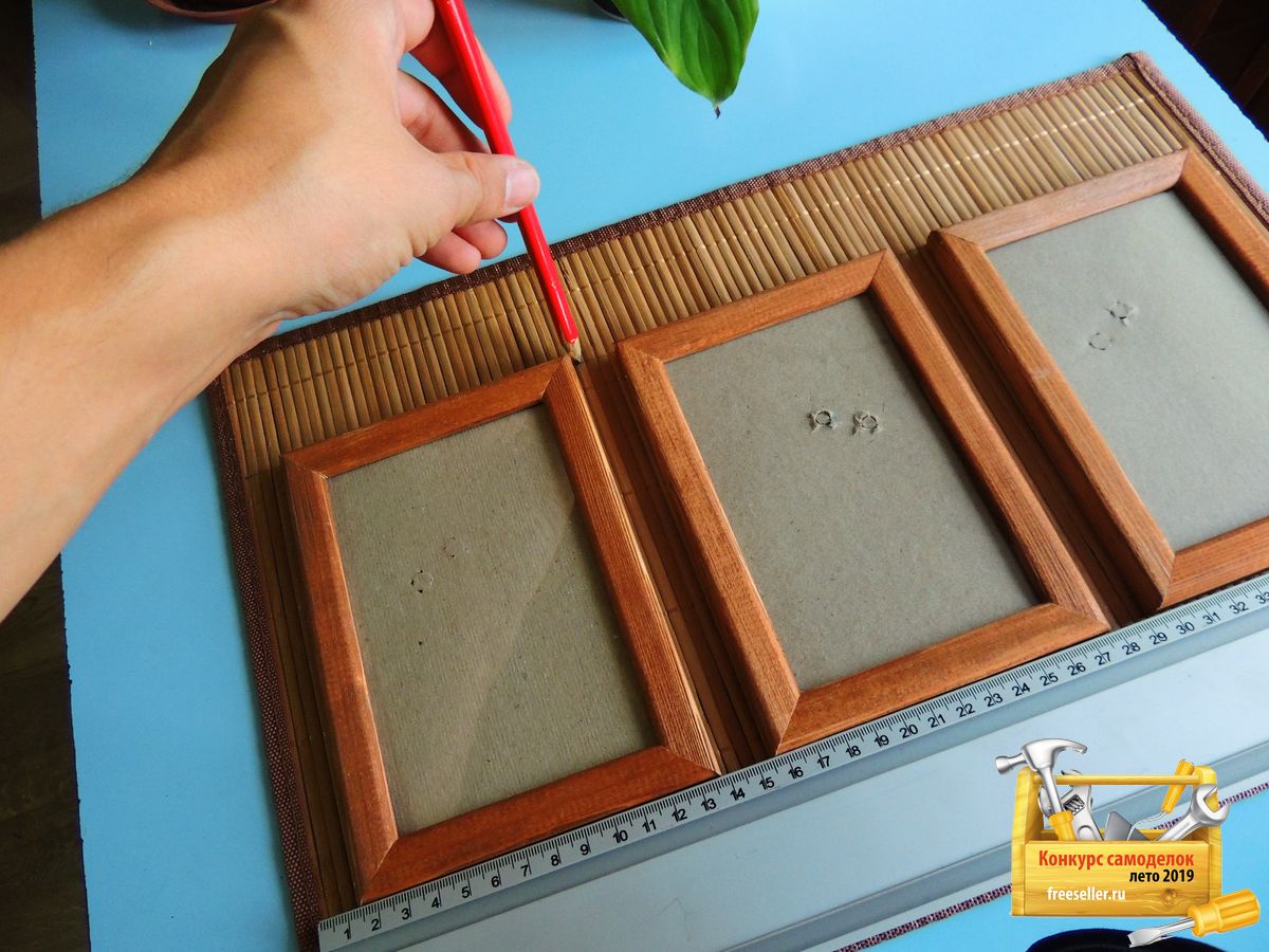 Далее нанес разметку на коврик, это для того чтобы все фоторамки располагались на одном уровне, и на одном расстоянии друг от друга.