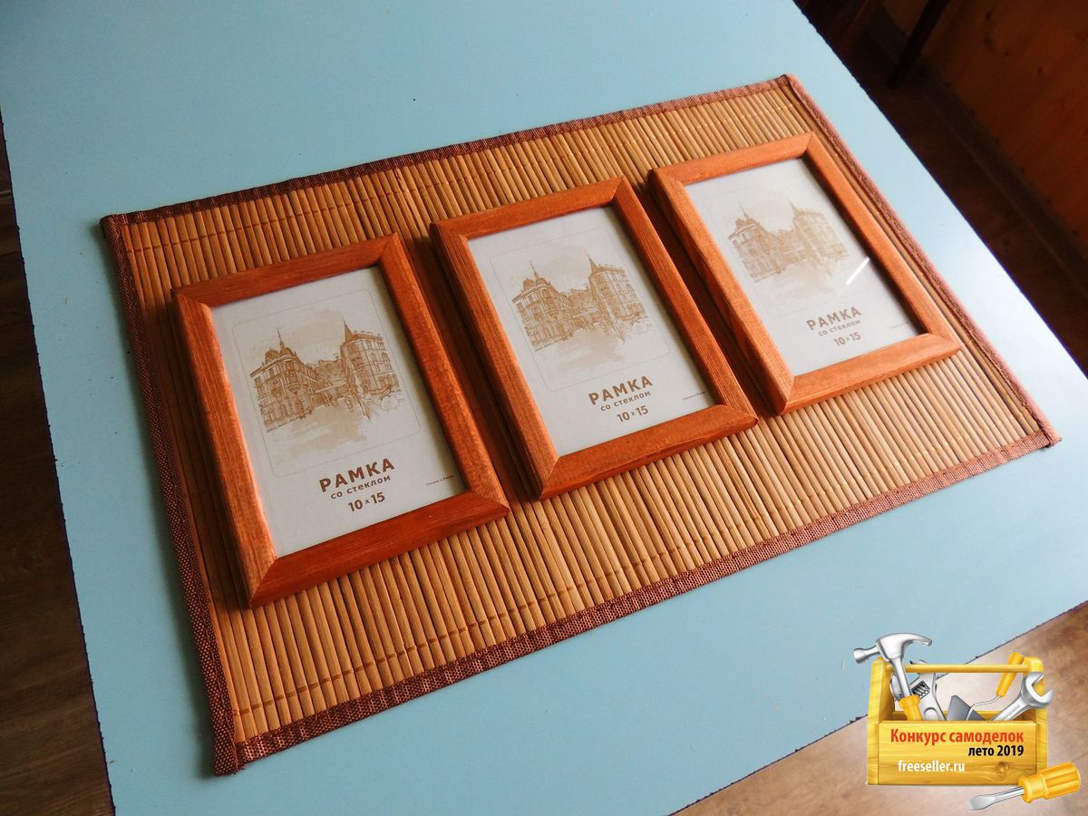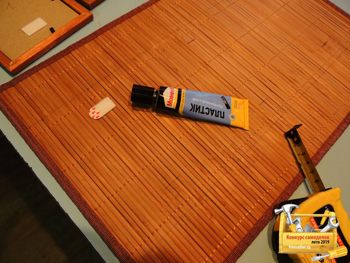 Все началось с того, что наткнулся в магазине на фоторамки и решил их купить, а также присмотрел рядом сервировочные коврики из бамбука, цена которых была не высокая и по цвету они хорошо подходили, вот я и решил совместить две эти вещи, и сделать что-то оригинальное. Смотрим, что у меня с этого вышло!