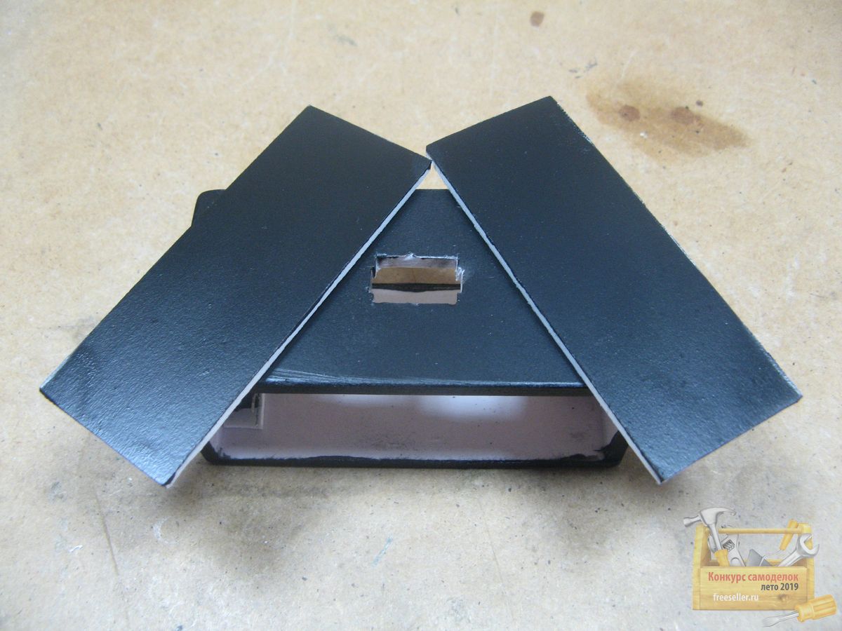 Вырезал две крышки и все покрасил матовой краской. После покраски вырезал проем под выключатель.