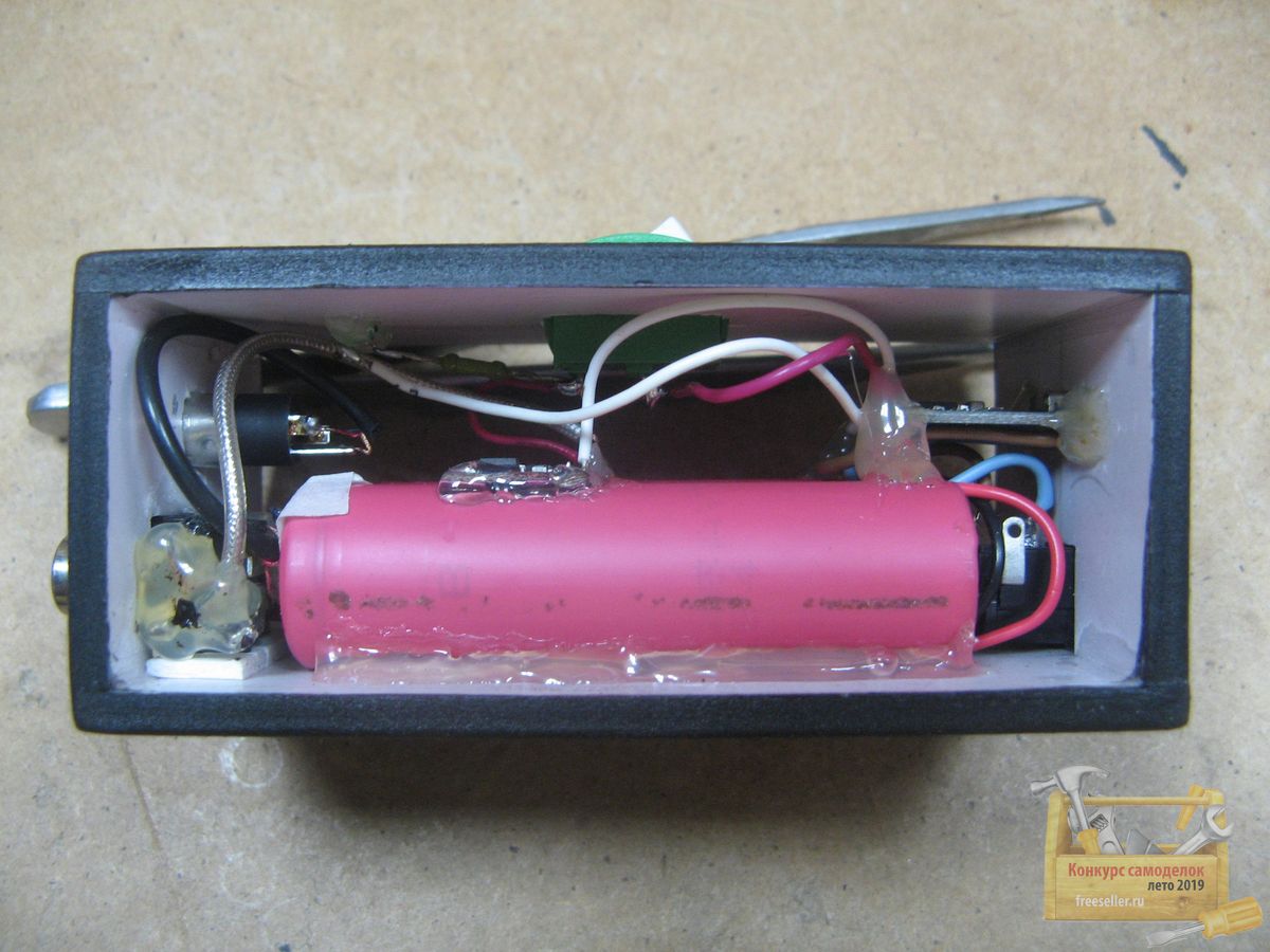Устанавливаю выключатель и все устанавливаю в корпус. Модуль фиксирую термо клеем.