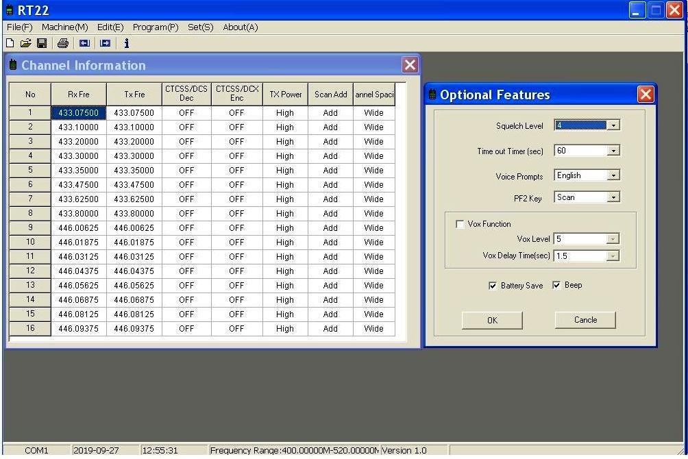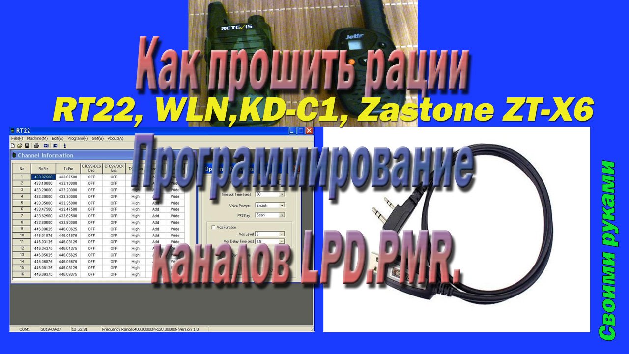 При получении рации уточняйте сетку частот и если это не разрешенная PMR, LPD то лучше рацию прошить с помощью программы Rt22 скачанной с сайта производителя с помощью кабеля для программирования.