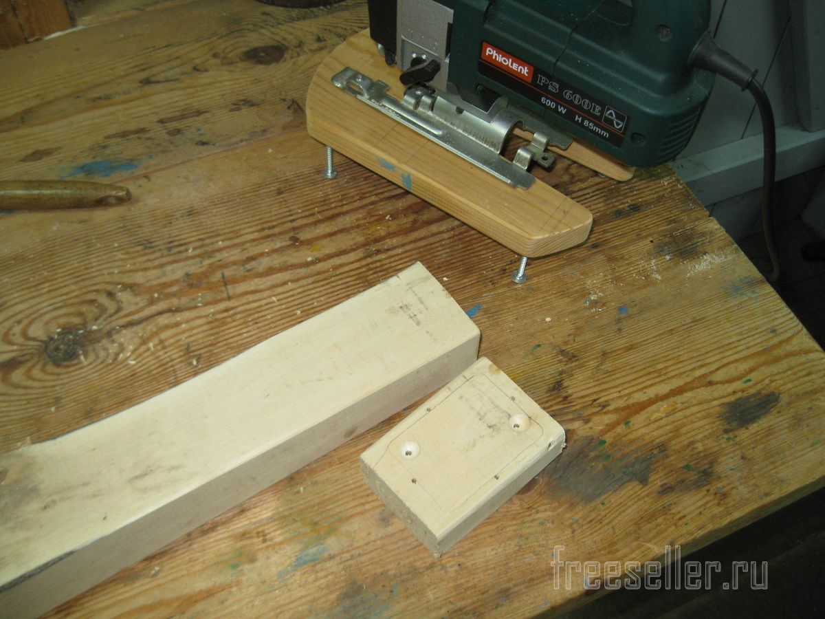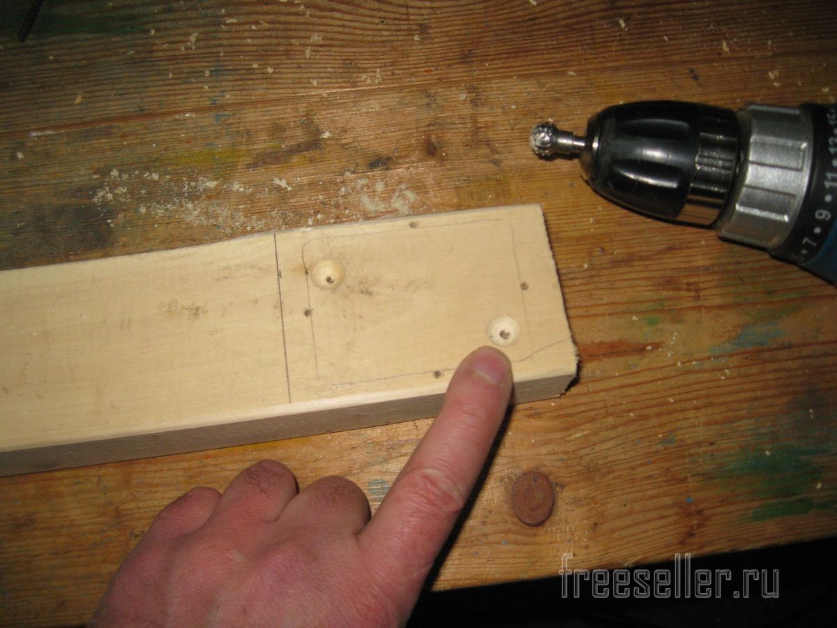 Сначала проводим разметку деревянного бруска. Тут нужно сказать, что я решил не сверлить сам пластиковый держатель, а просто прижать его к бруску при помощи четырех шурупов с прессшайбой.