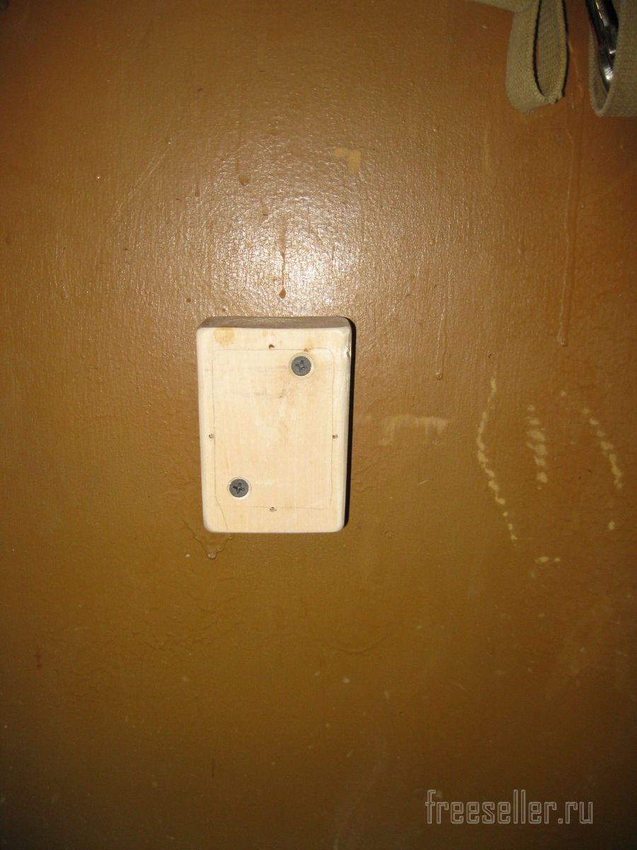Ну, а затем, прикручиваем этот брусок двумя шурупами к стене на крыльце, где собственно и будут висеть спортивные палки.