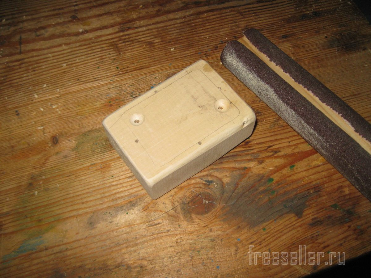 После этого, обрабатываем лицевую часть бруска наждачной бумагой.