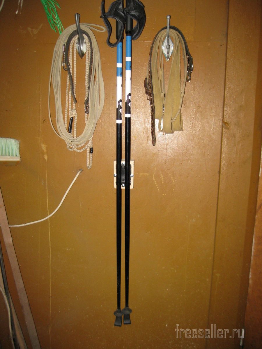 Очень простой настенный держатель для различных спортивных палок, например, палок для скандинавской ходьбы, лыжных палок и т.п.