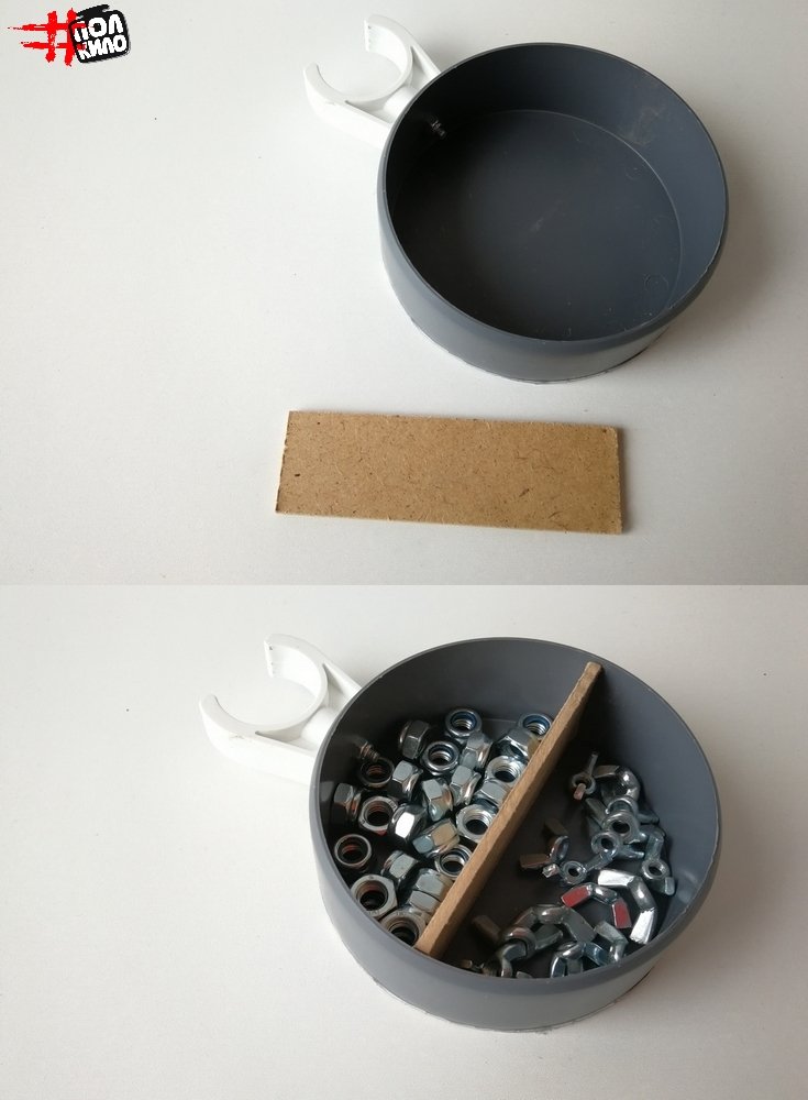 Простой органайзер для домашней мастерской из ПВХ труби канализационных заглушек.