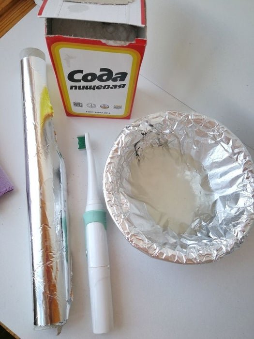 Такие украшения можно отнести в ювелирную мастерскую и там вам их почистят, вернут пропавший блеск. Но что делать, если такой возможности нет или вы не хотите тратить лишние деньги? Есть много способов, как очистить серебро в домашних условиях. Я покажу вам способ, которым пользуюсь я. Я чищу свое серебро с помощью пищевой соды и фольги.