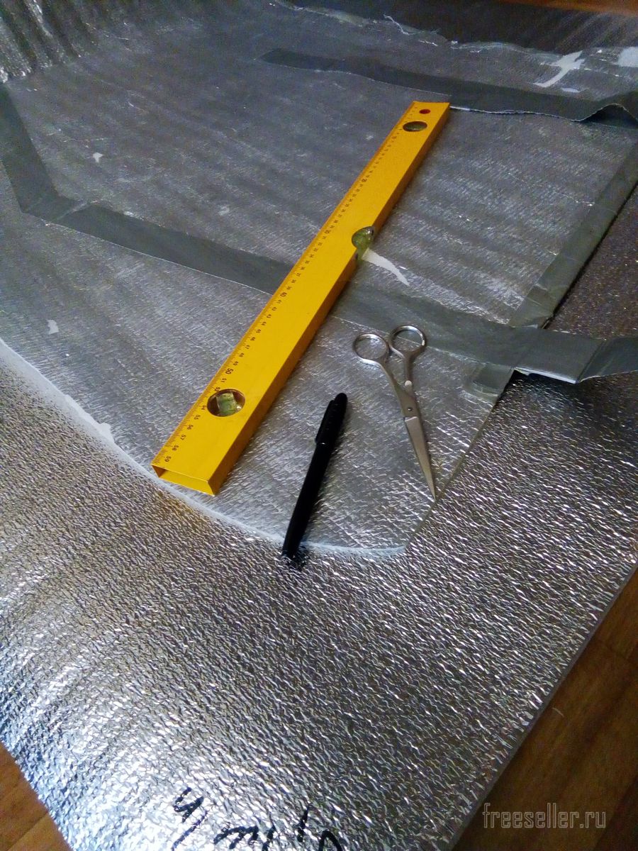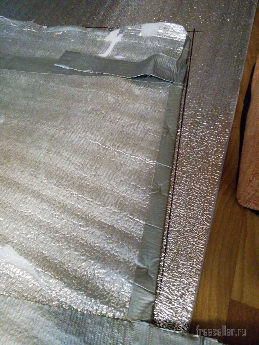 На лист (отрез) фольгоизола накладываем старую накидку, она послужит шаблоном. Маркером обводим по контуру.