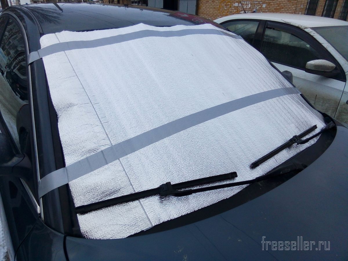 Самодельная универсальная накладка на лобовое стекло защитит от снега, льда и солнечных лучей.