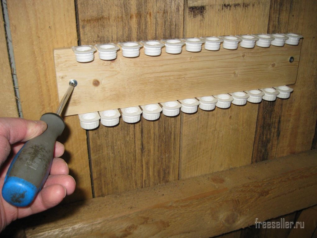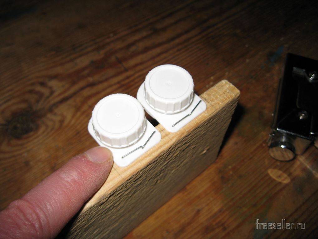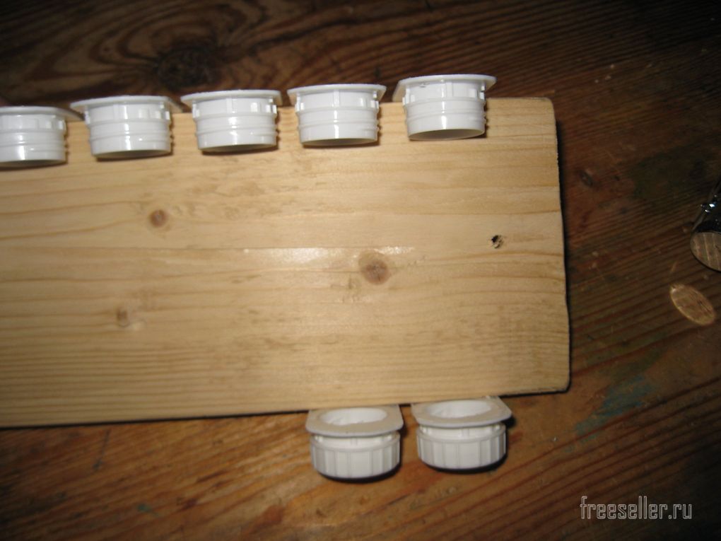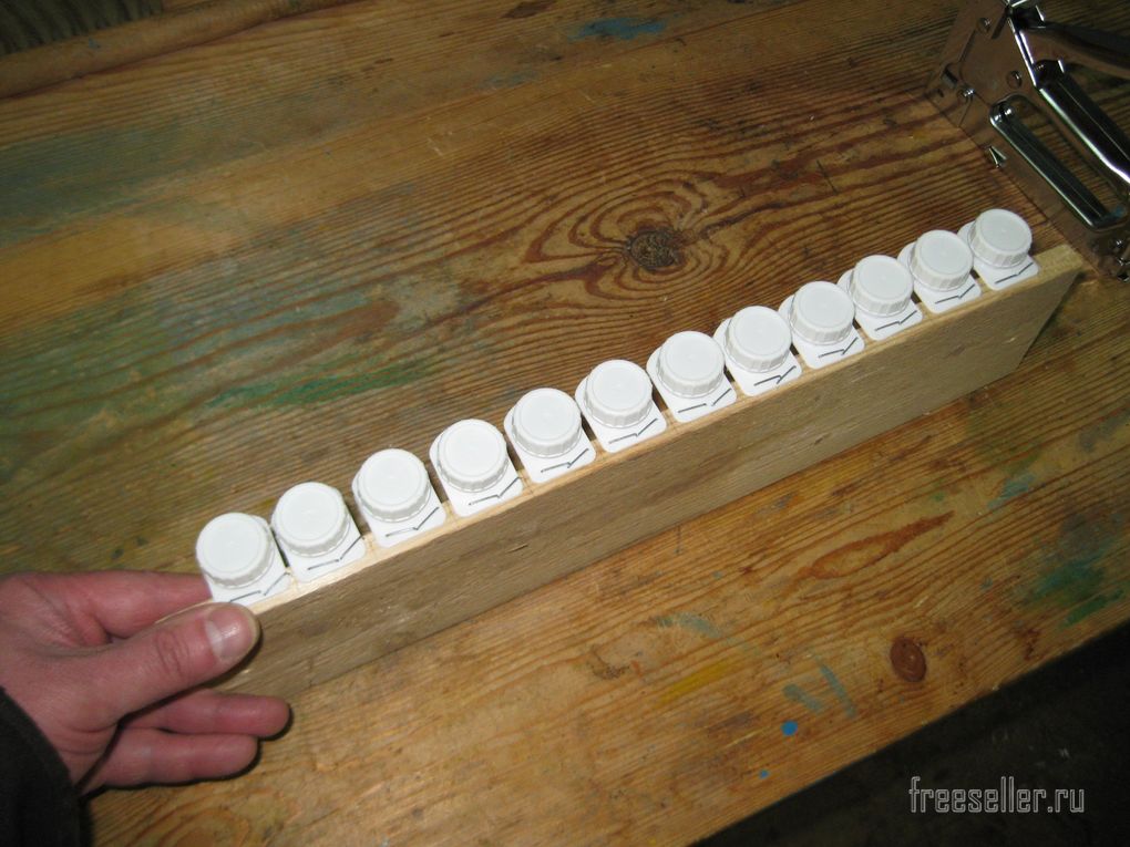 И точно так же, прикрепил их к нижней стороне дощечки, крышками вниз.
