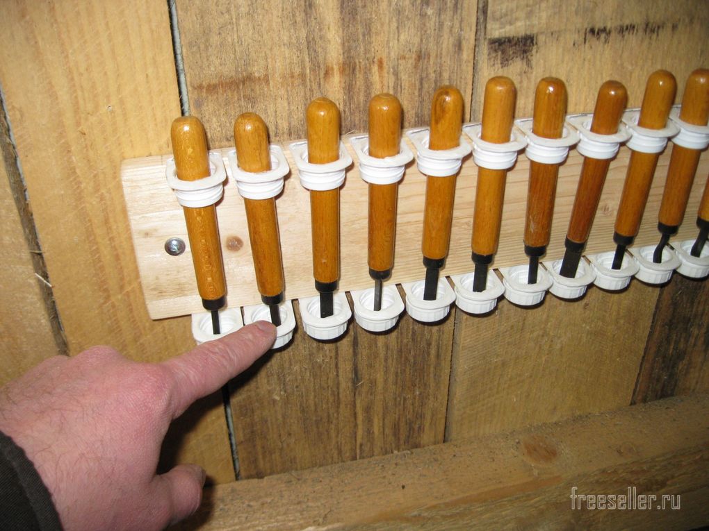Например, если сделать только верхний ряд пластиковых резьбовых оснований, в них удобно будет вставлять отвертки или другой инструмент с длинными и узкими рабочими частями.