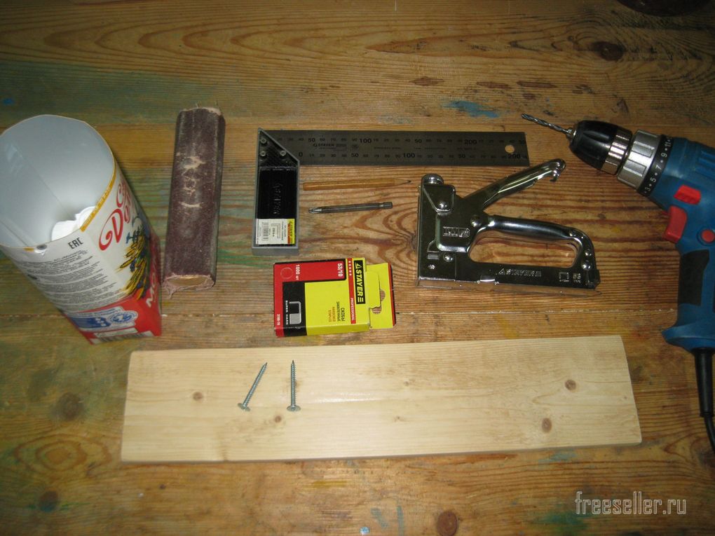 При этом сделать такой держатель можно очень быстро и для этого потребуется минимальный набор инструментов (практически один строительный степлер).