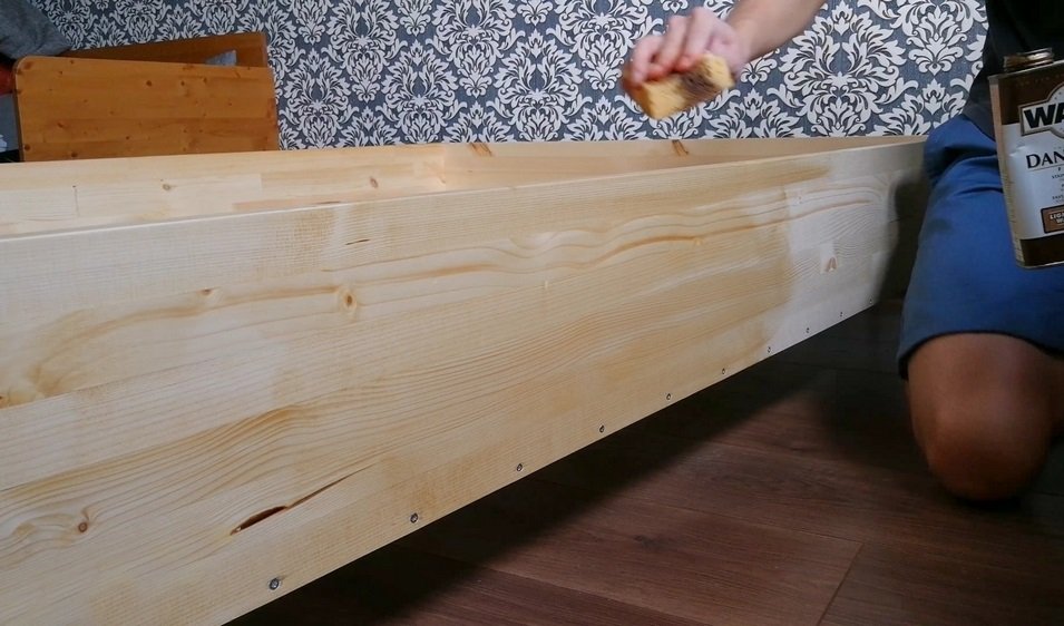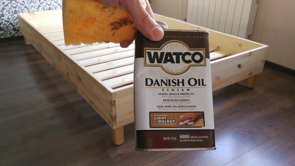 Кровать покрыл льняным маслом - Watco Danish Oil ( цвет светлый орех).