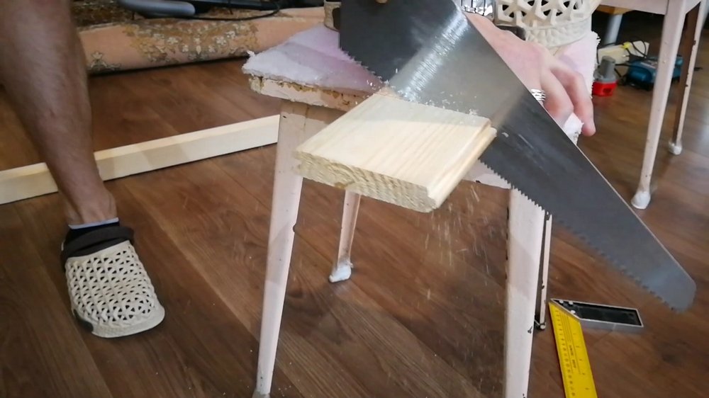 В качестве ножек я взял остатки от балясин. Остальную часть балясин я использовал для изготовления кухонного стола.