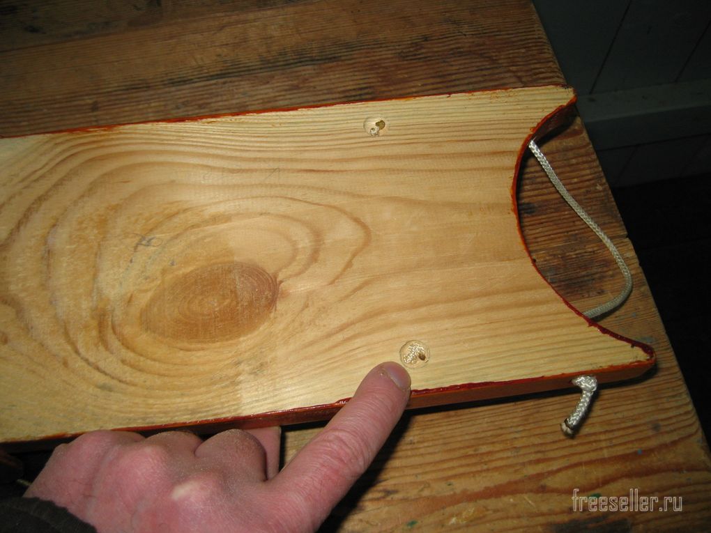Затем с краев этой выемки просверлил отверстия диаметром 6 мм, под веревку. Их кромки также слегка раззенковал.