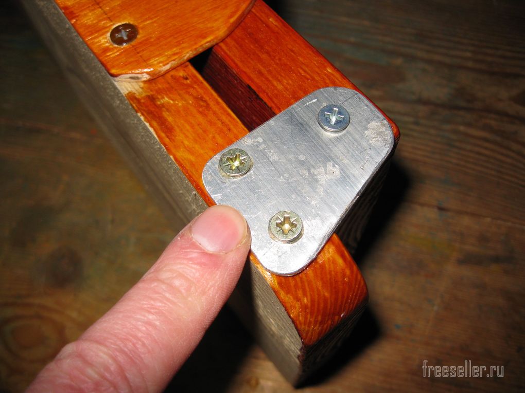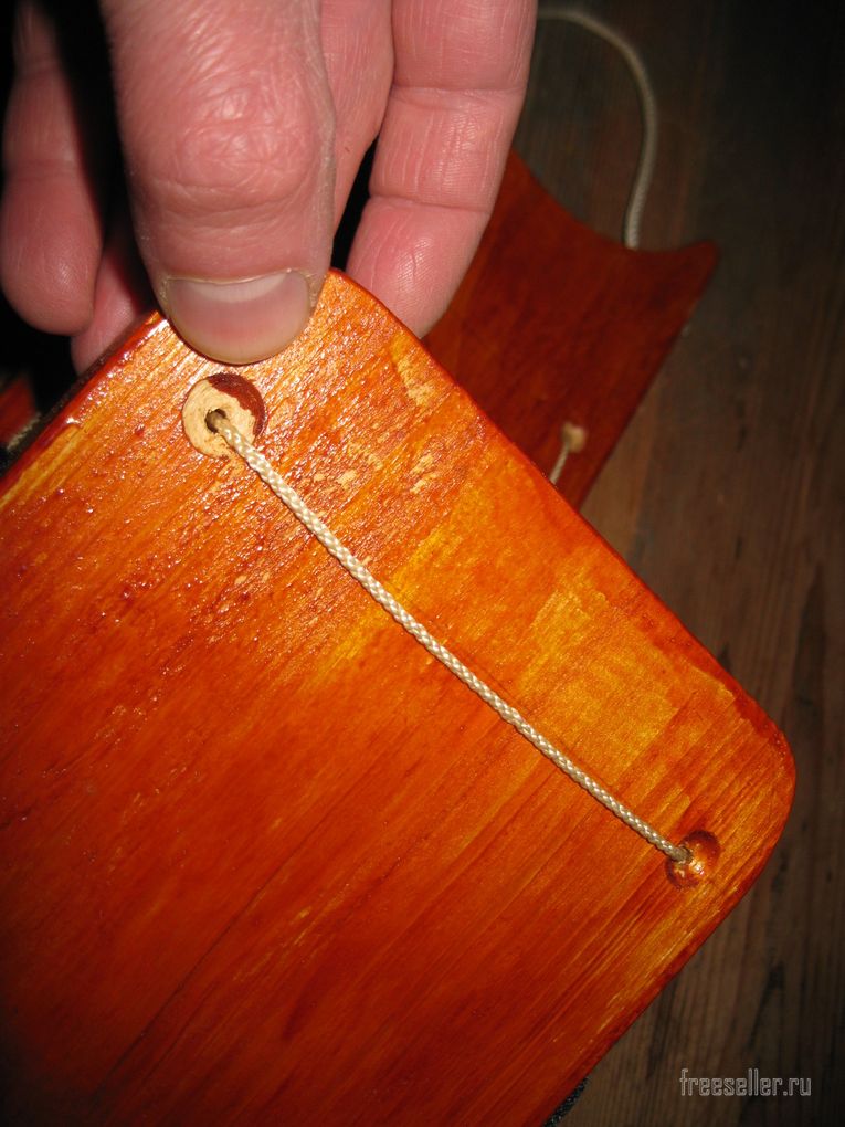 Затем оставалось сделать шарнирное соединение между двумя дощечками. В принципе это можно было сделать при помощи небольших петель, однако, поскольку их у меня под рукой не было, я пошел другим путем.