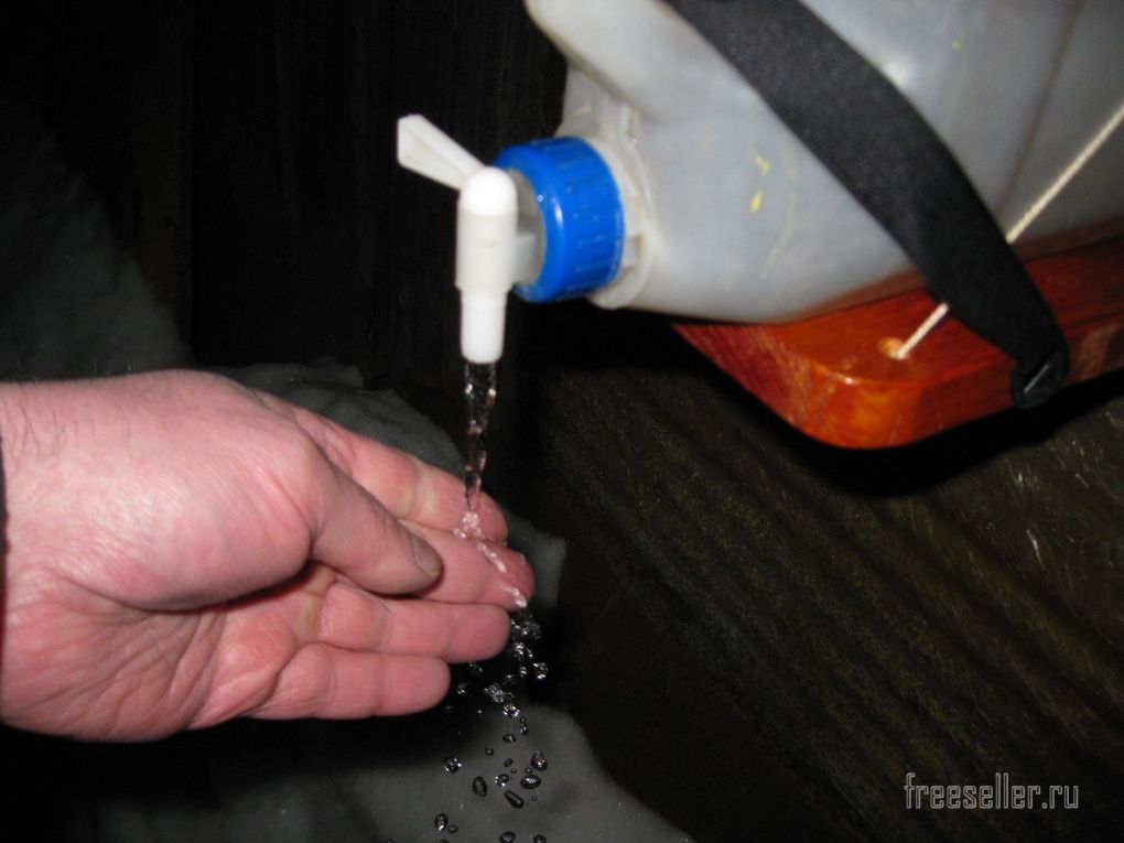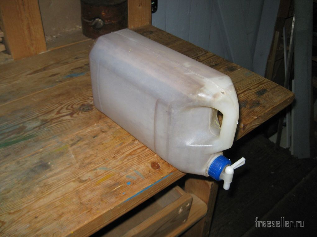 Однако еще тогда, я понял, что саму пластиковую канистру с краном, очень удобно было бы использовать в качестве летнего уличного рукомойника или умывальника. Более того, эту канистру можно было бы использовать в качестве умывальника и дома, например, в случае отключения воды, которое у нас часто случается в летнее время. В этом случае данную канистру можно было бы подвешивать прямо над ванной или над раковиной в ванной комнате.