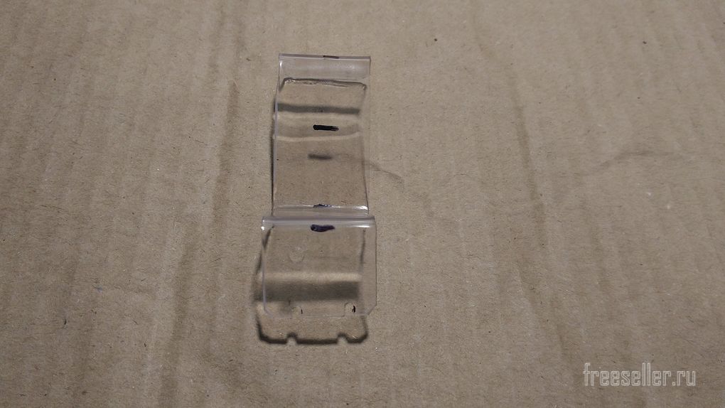 Отрезок прозрачного пластика. Отверстия разметил и просверлил.